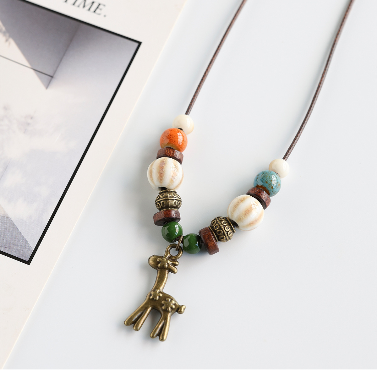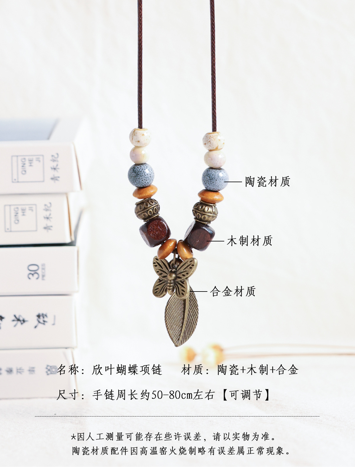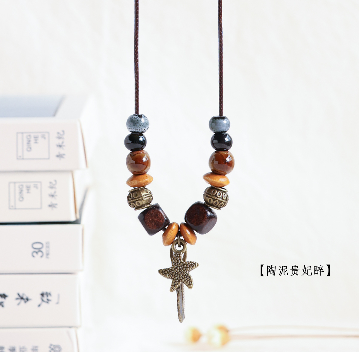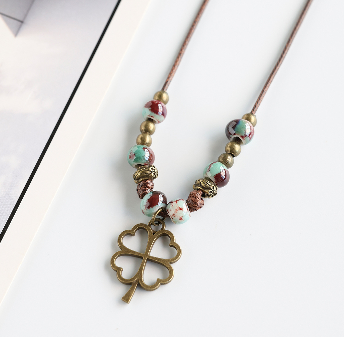Source factory national style ceramic necklace new Chinese clavicle chain female pendant niche high sense sweater chain wholesale