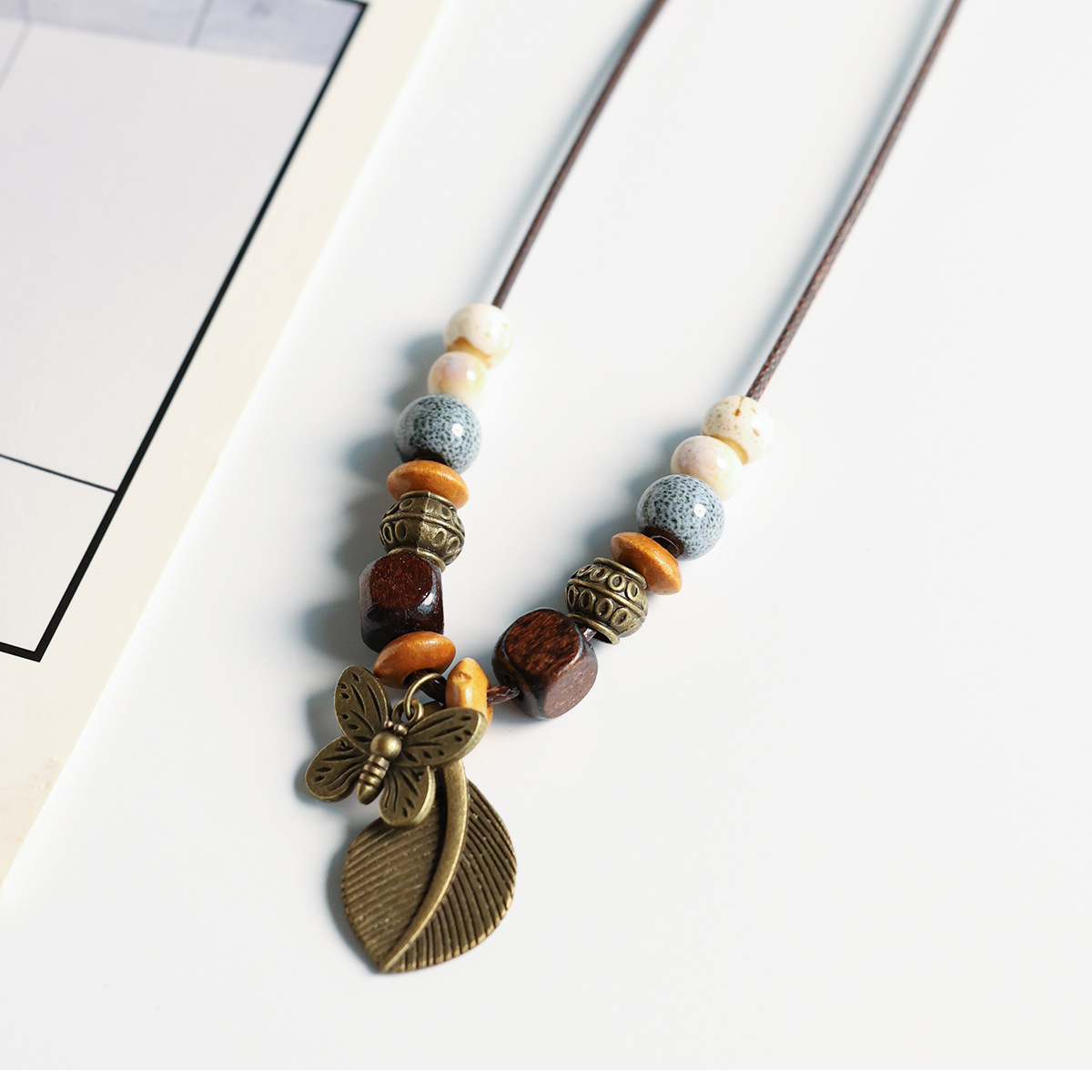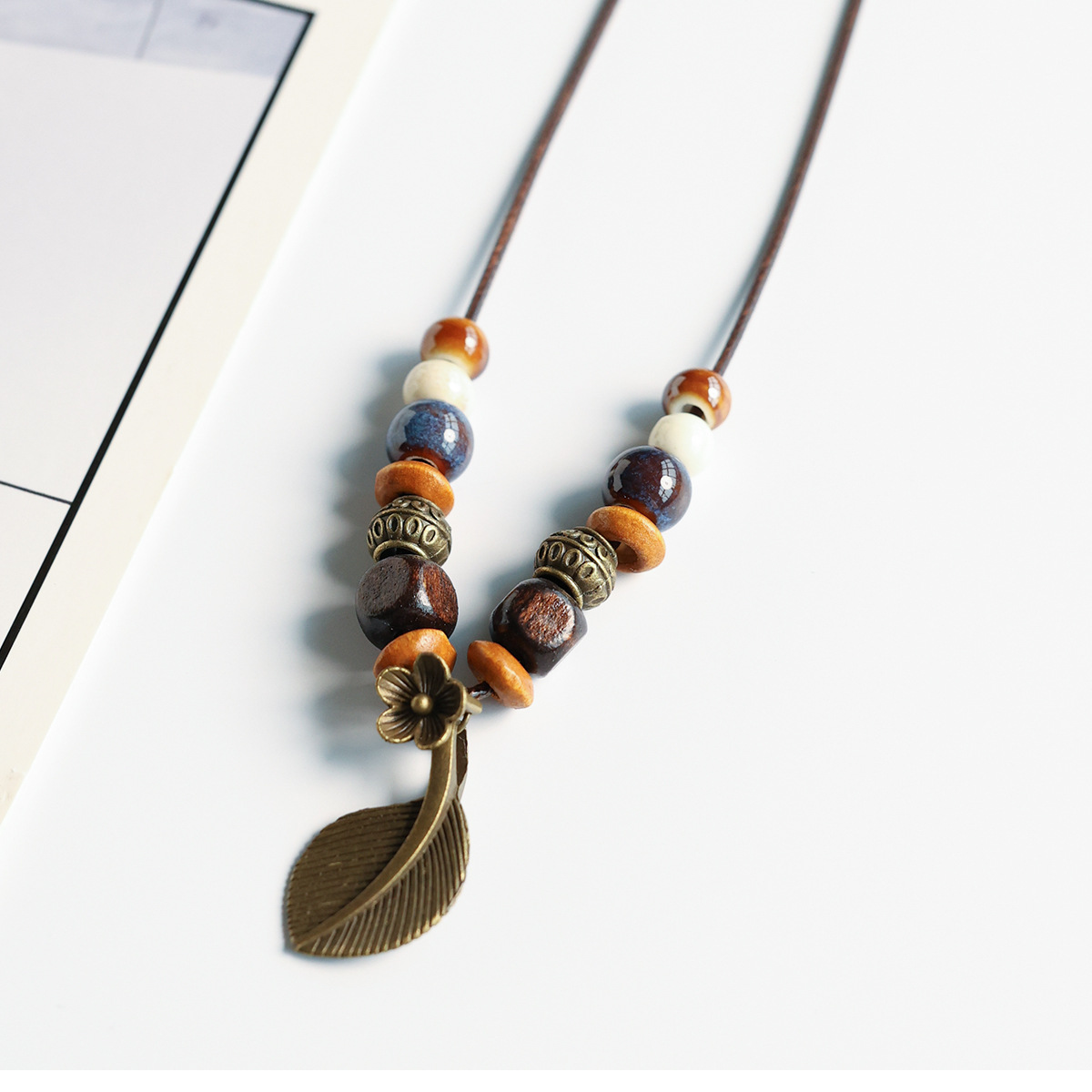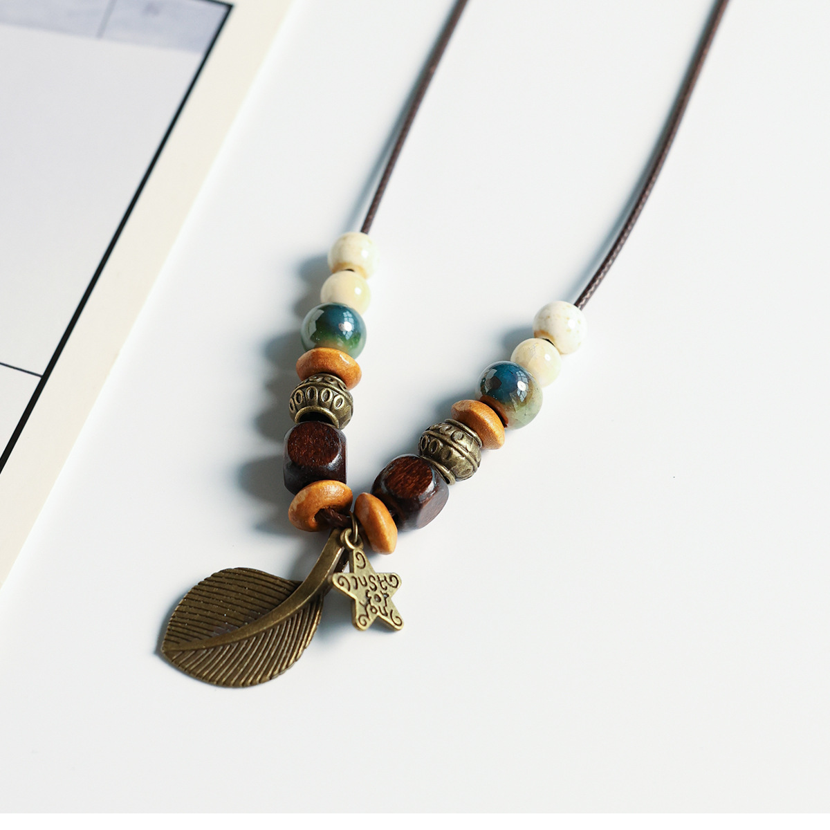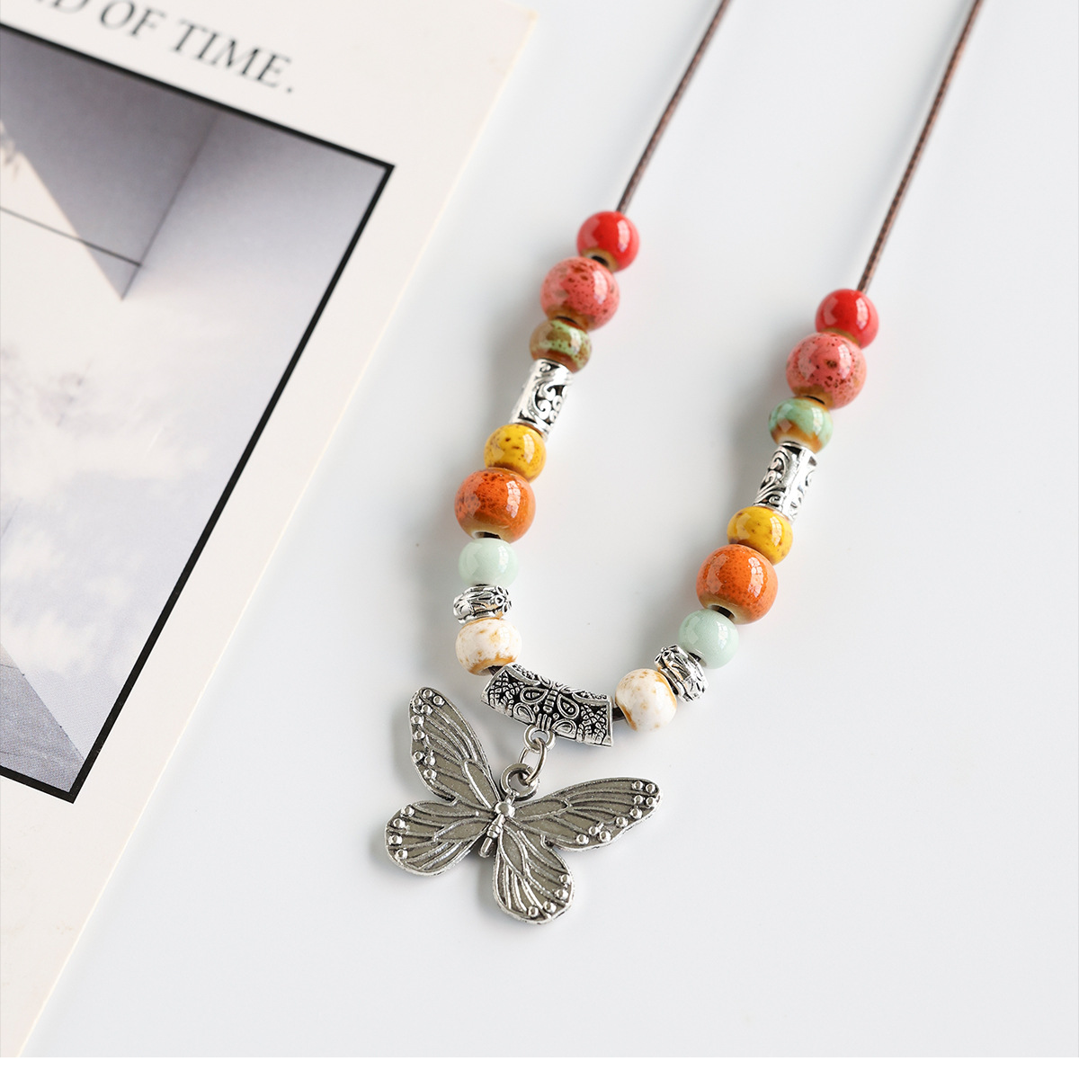 Source factory national style ceramic necklace new Chinese clavicle chain female pendant niche high sense sweater chain wholesale