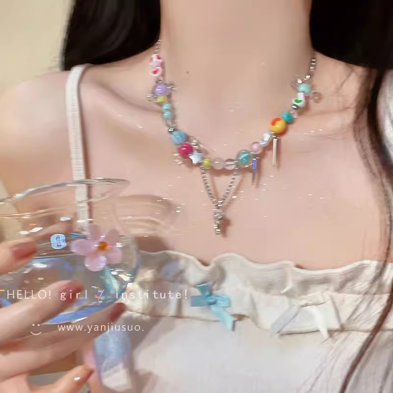 Color: Knock on a rainbow candy necklace in summer