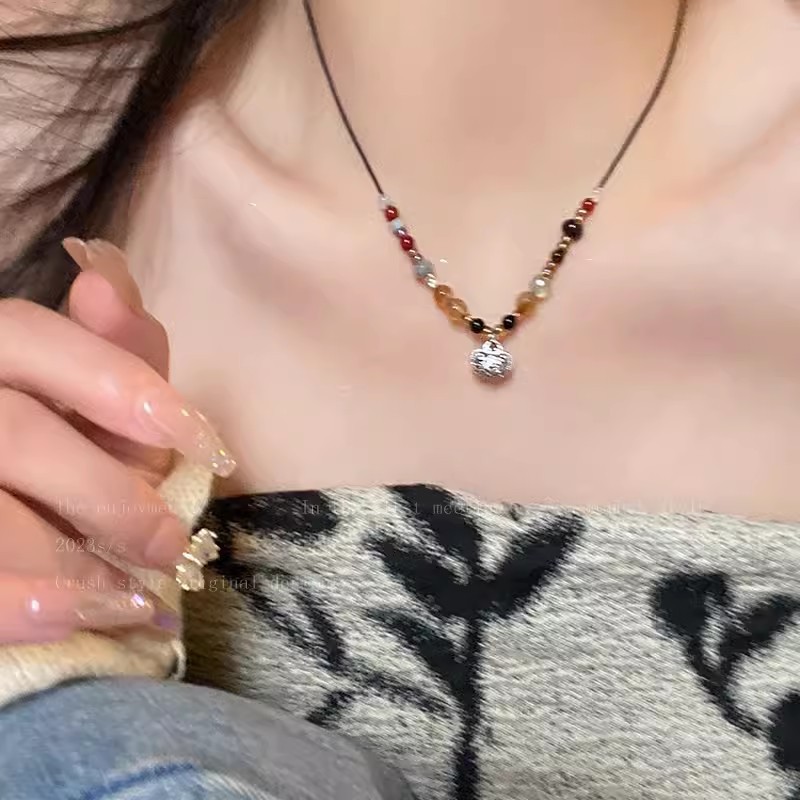 Color: New chinoiserie ping an lock beaded pendant necklace