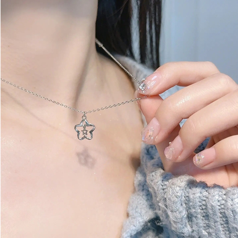 Color: Sweet cool style zircon pearl necklace-pointed star
