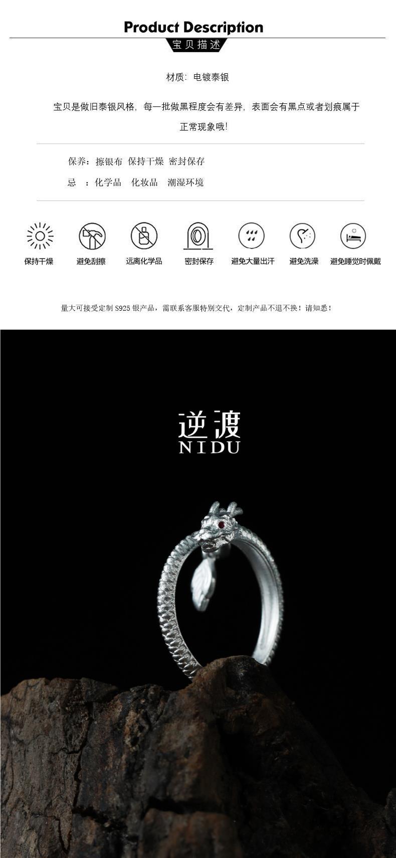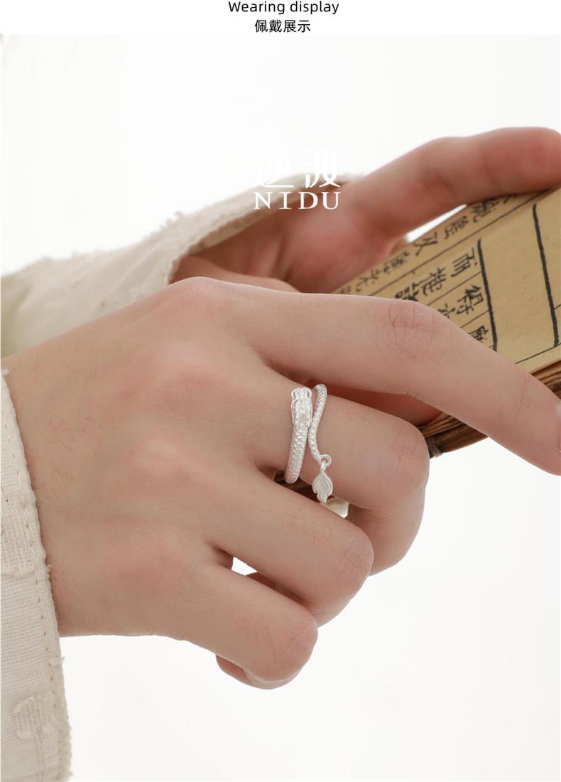 Zodiac Dragon Line Ring Goddess Dragon Tail Swing Exquisite New Chinese Style Open Ring Ins Style Internet Celebrity Distinctive Finger Ring