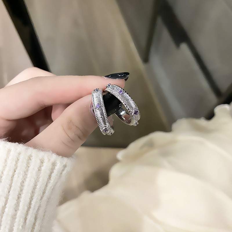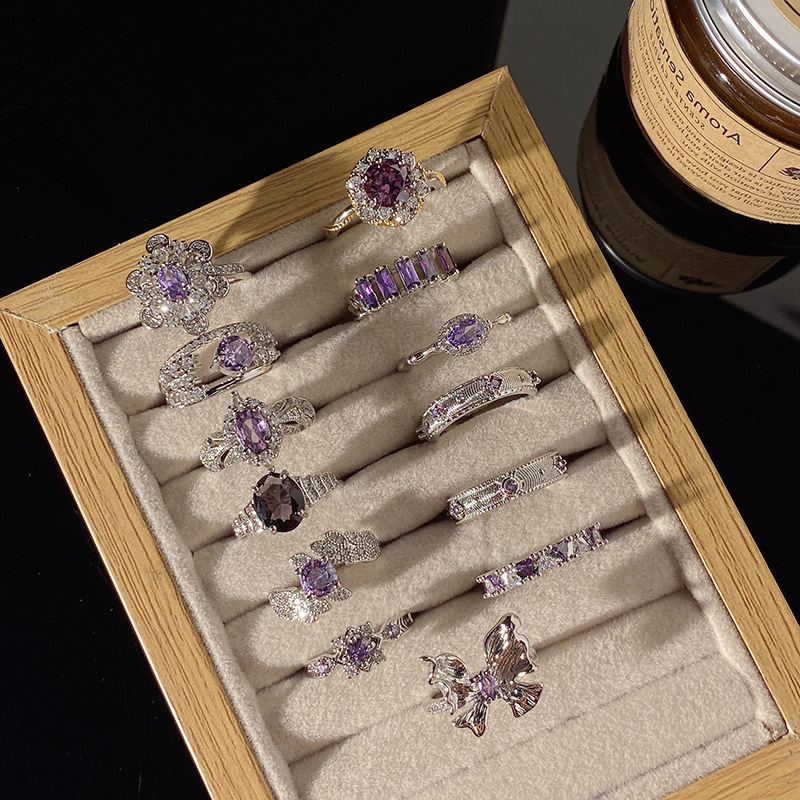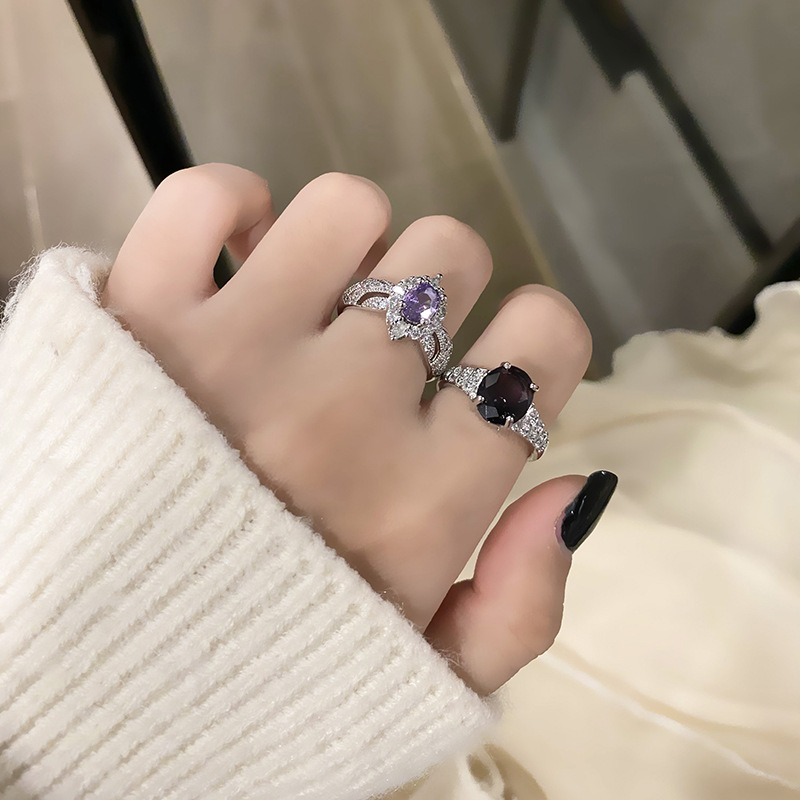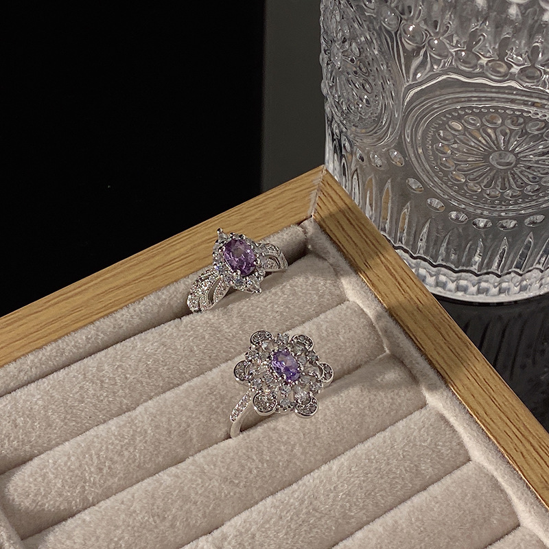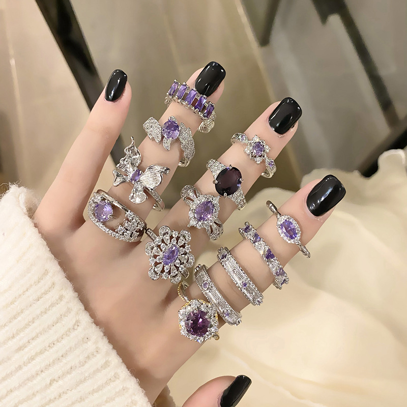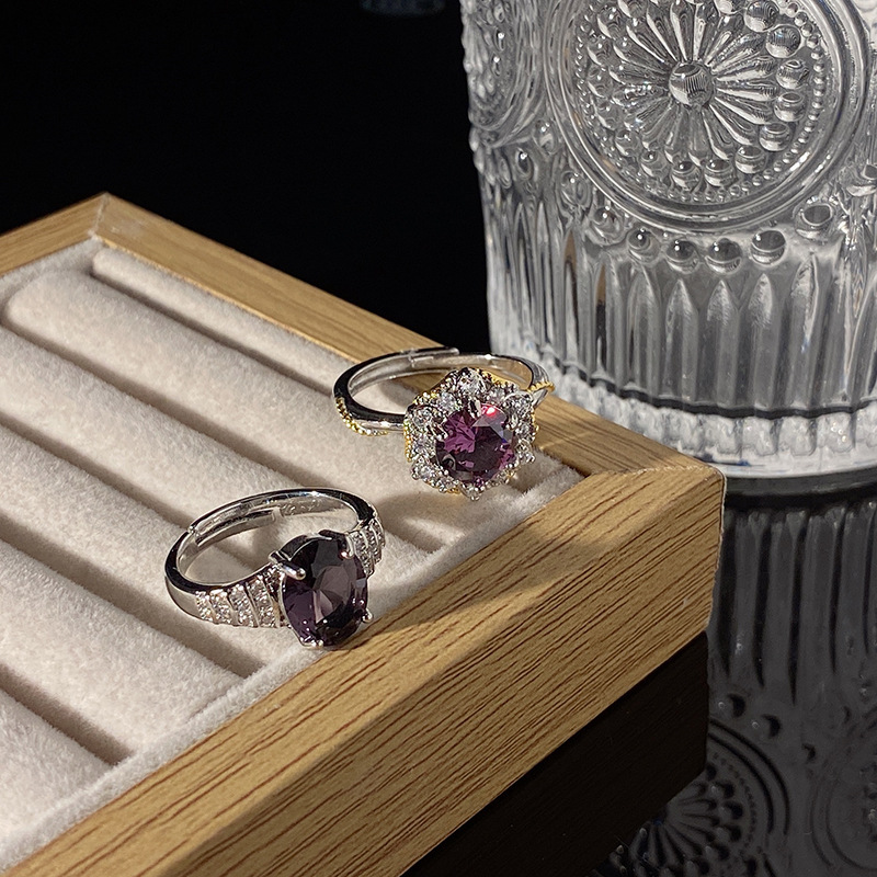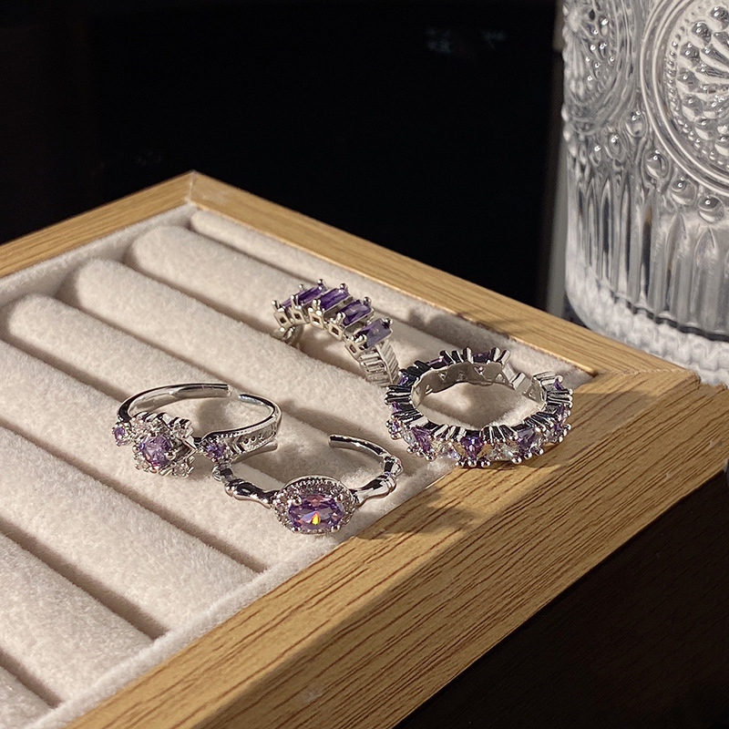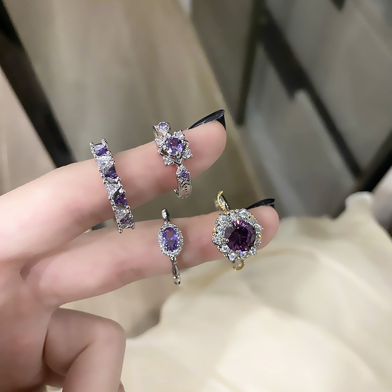 Light Luxury High-end Sense Purple Diamond Style Open Ring Women's Elegant Niche Minimalist Personality All-match Cold Style Finger Ring Accessories