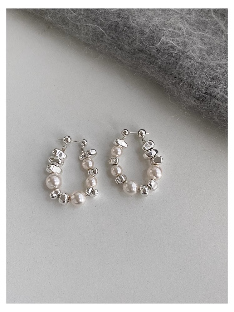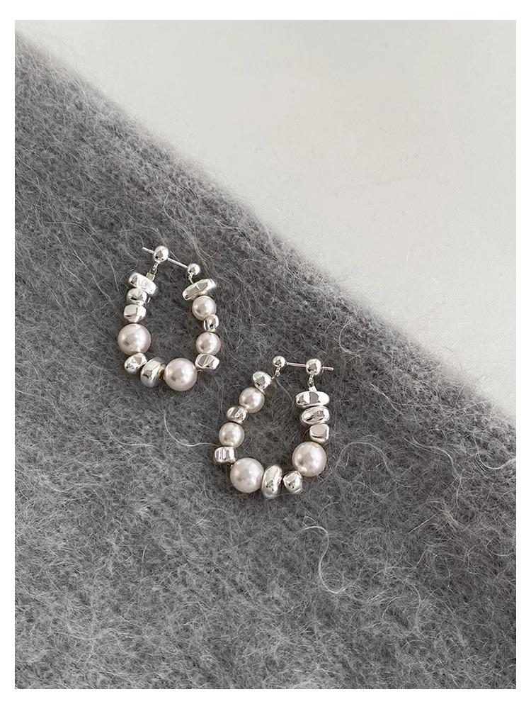 Aria Broken Silver Pearl White Design Sense Irregular Earrings Women's Simple All-match Earrings Small Fresh Style Niche Women's Earrings
