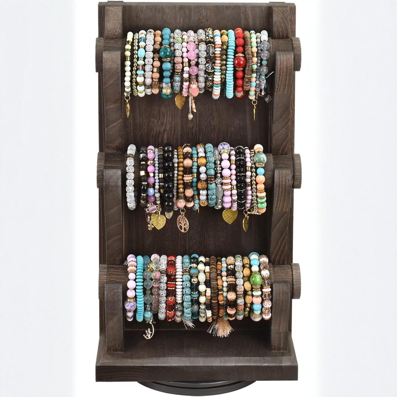 Customized Wooden Jewelry Rack for Home Store Desktop Retro Bracelet Jewelry Display Rack Double-Sided Rotating Wooden Storage Rack