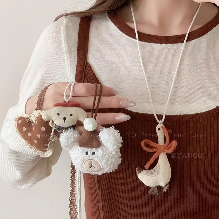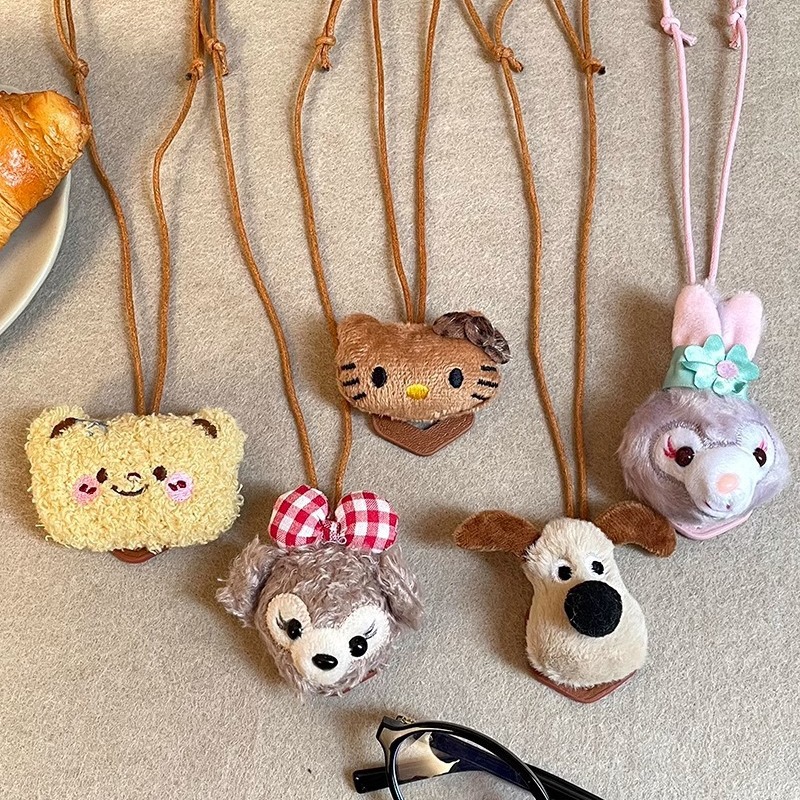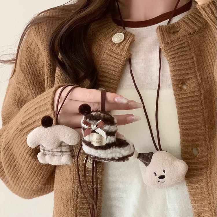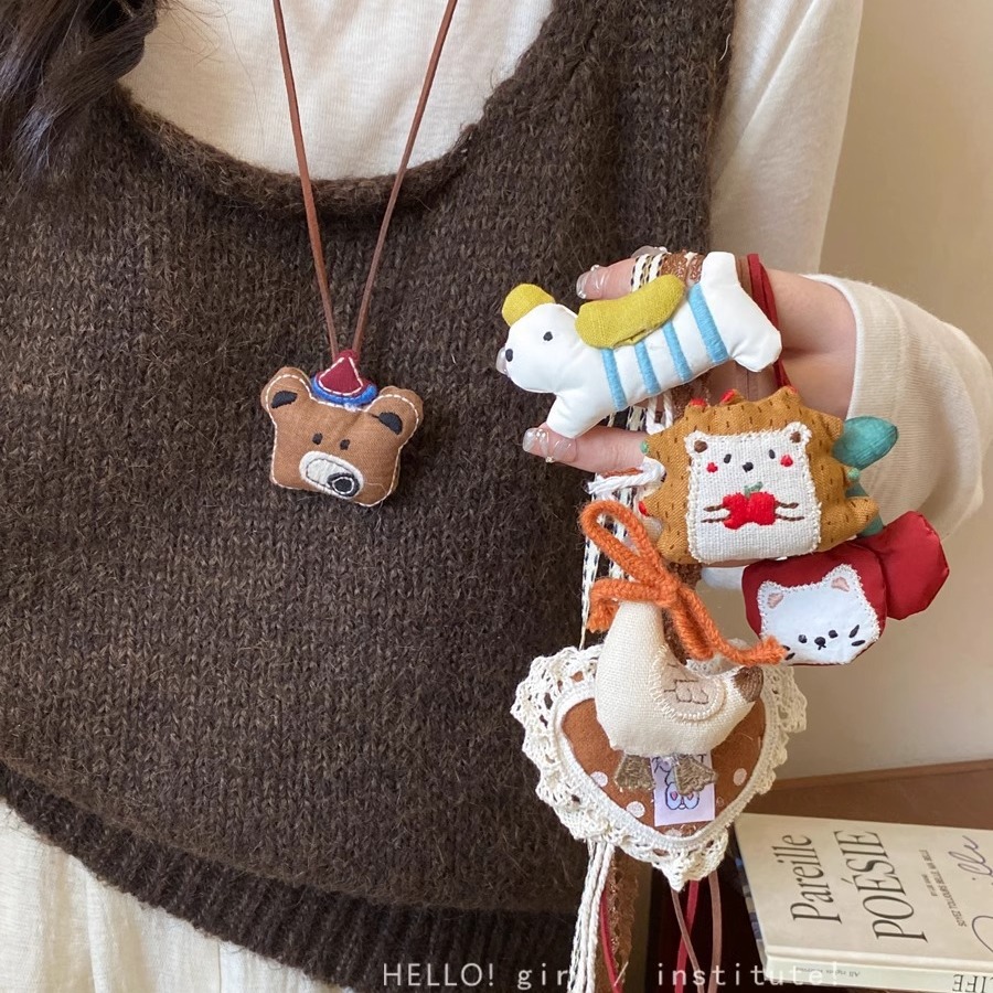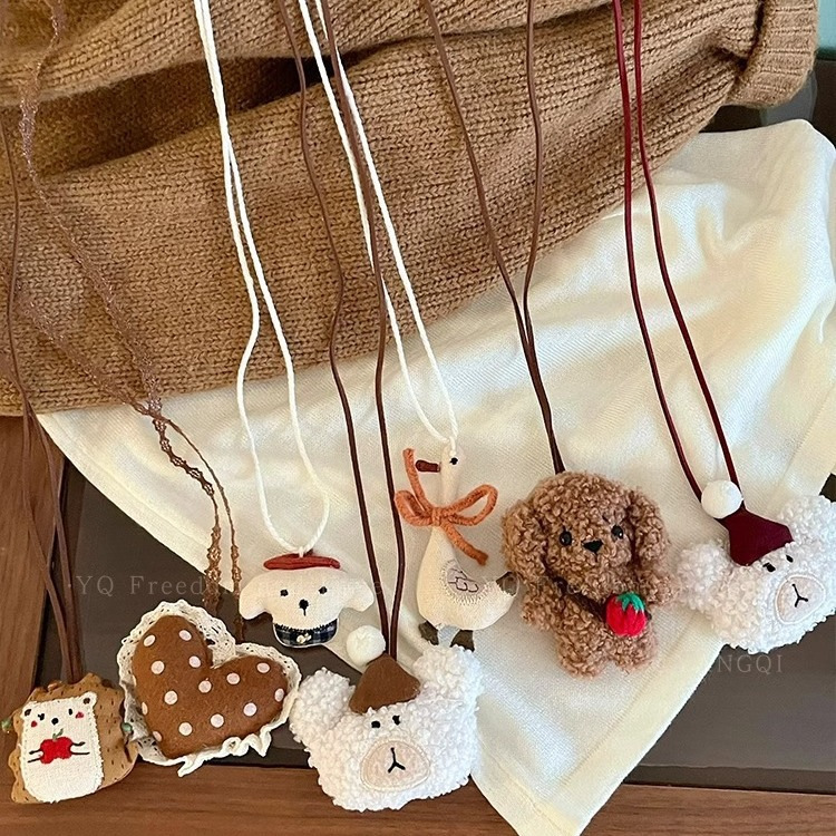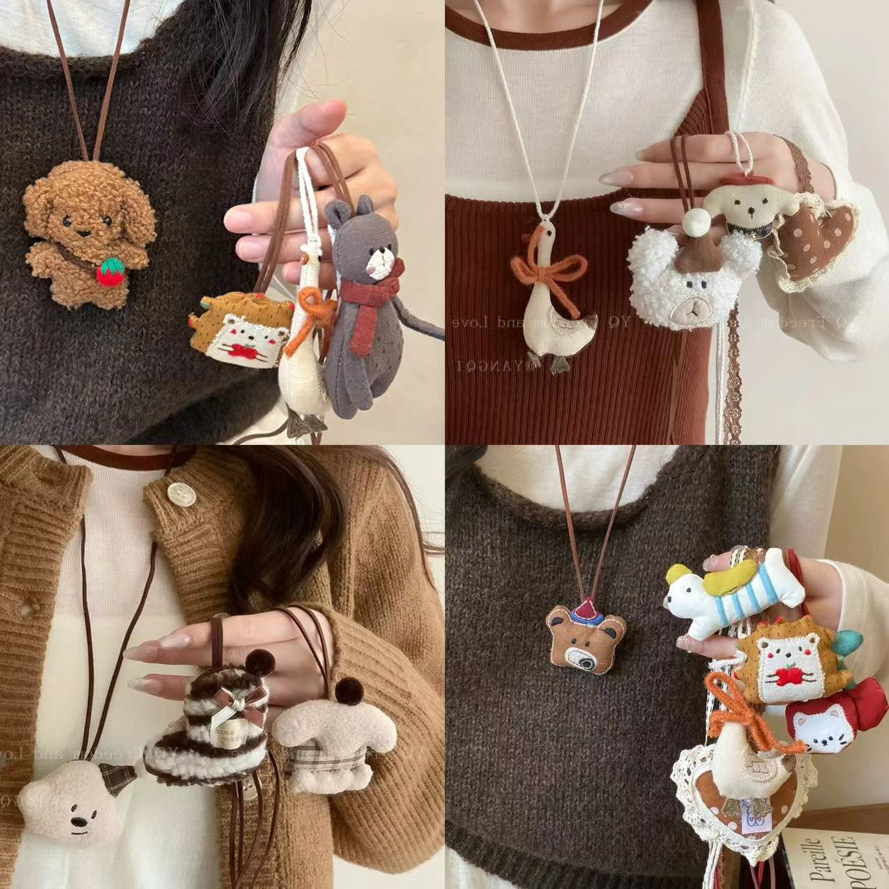 South Korea cartoon plush puppy bear necklace concave shape cute autumn and winter sweater accessories personality long sweater chain