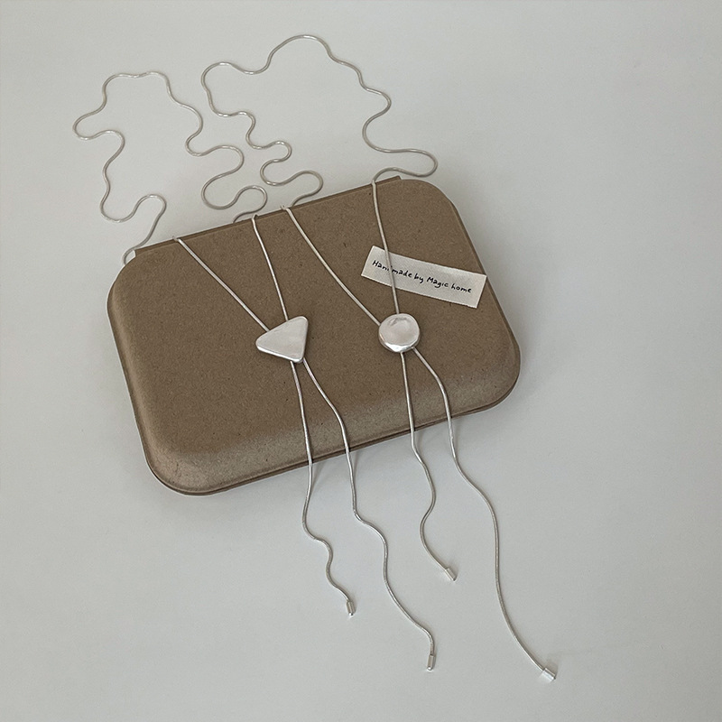 Simple Niche Geometric Round Triangle Pull-out Long Necklace Women's Ins Elegant All-match Neck Chain Woolen Chain