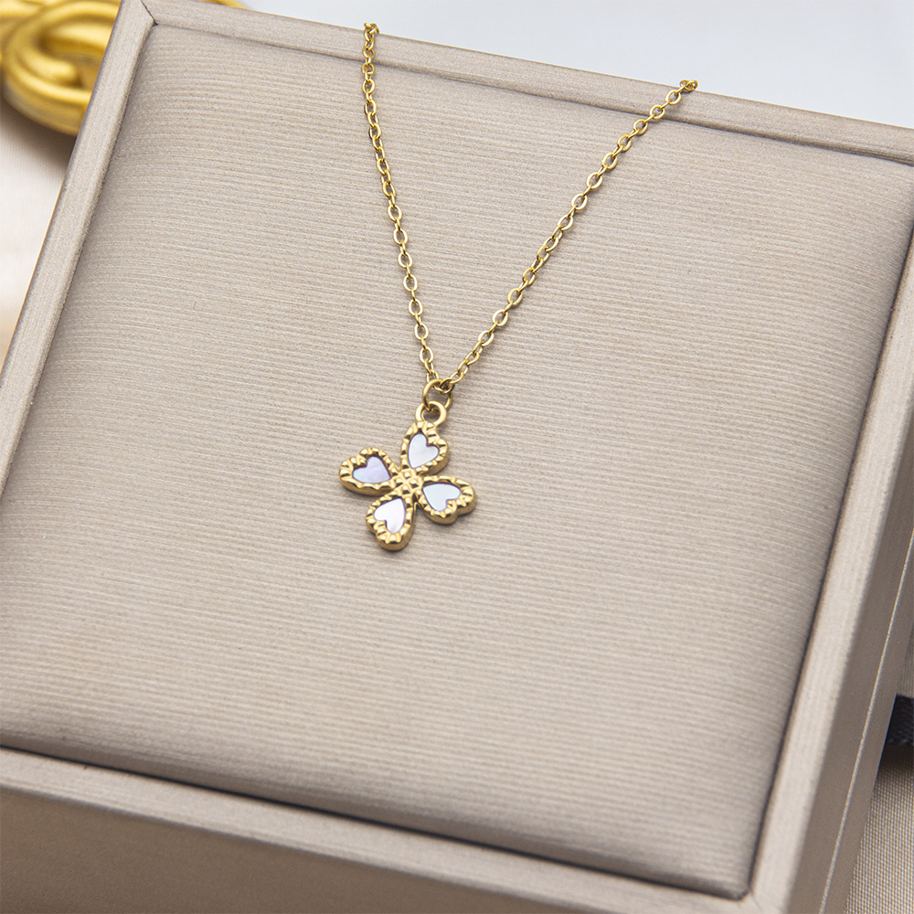 French Retro Shell Four-leaf Clover Necklace Simple Girl Four-leaf Flower Clavicle Chain Titanium Steel Gold Plated