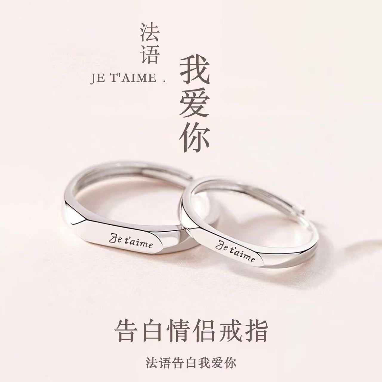 2024 New Fashion French I Love You Couple's Ring Niche Design Sense Advanced Sense Adjustable Personality Ring