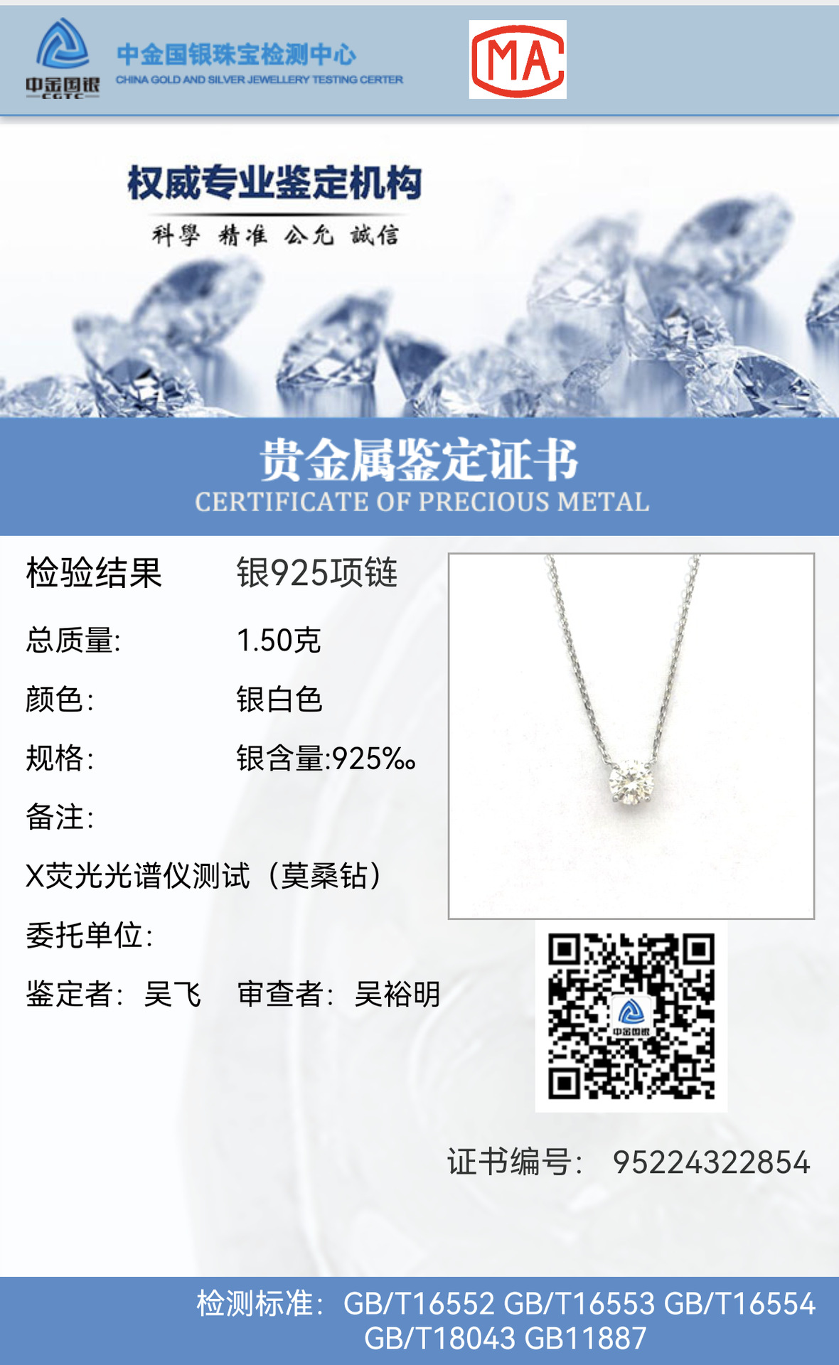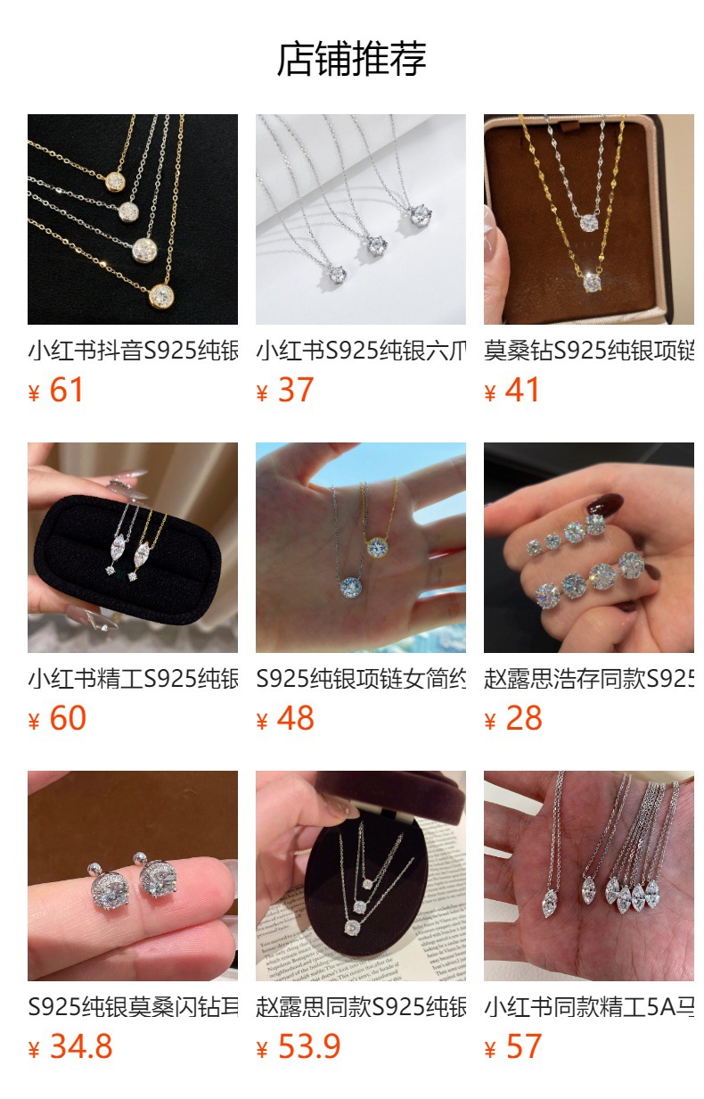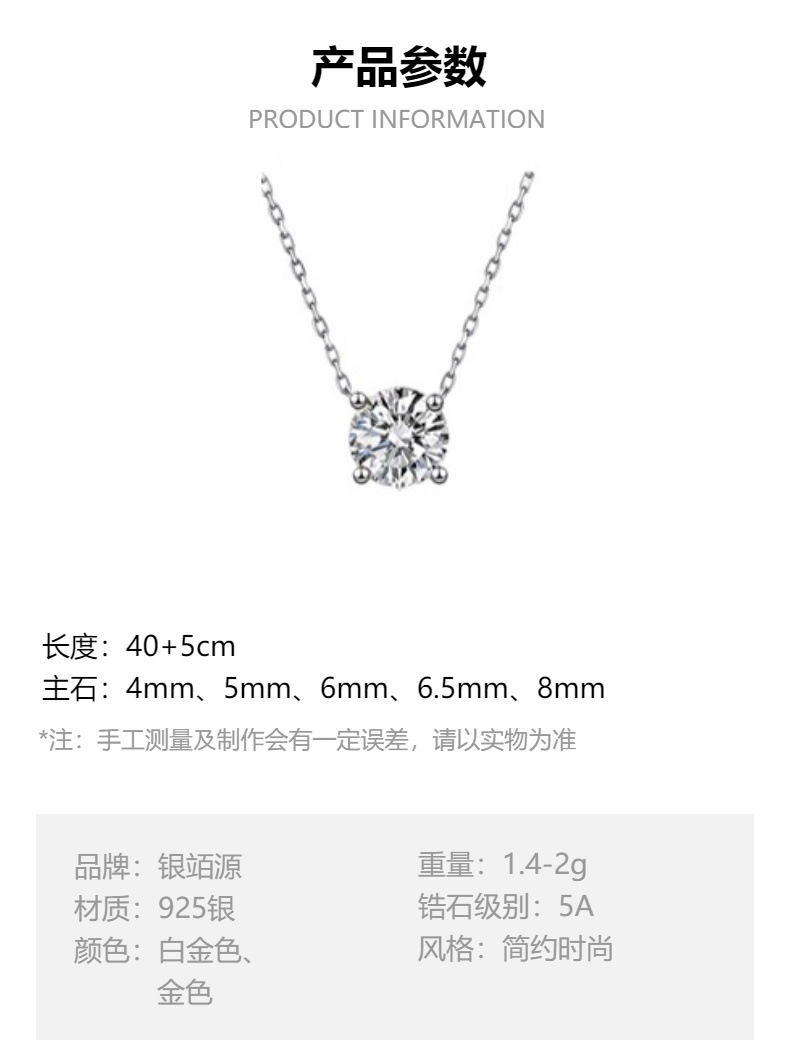 Xiaohongshu Zhao Lusi Style S925 Sterling Silver Moissanite Necklace for Women, Four-Prong 5A High Carbon Diamond Nose Stud Diamond Collarbone Chain