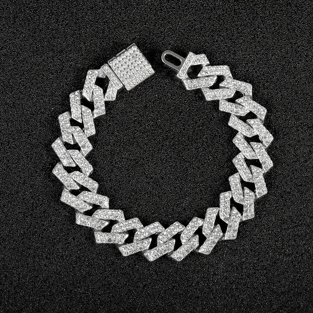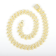 Source Manufacturer High Quality Cuban Chain 15mm Rhombus Full Diamond Flip Hip-Hop Necklace Bracelet Cuban Chain