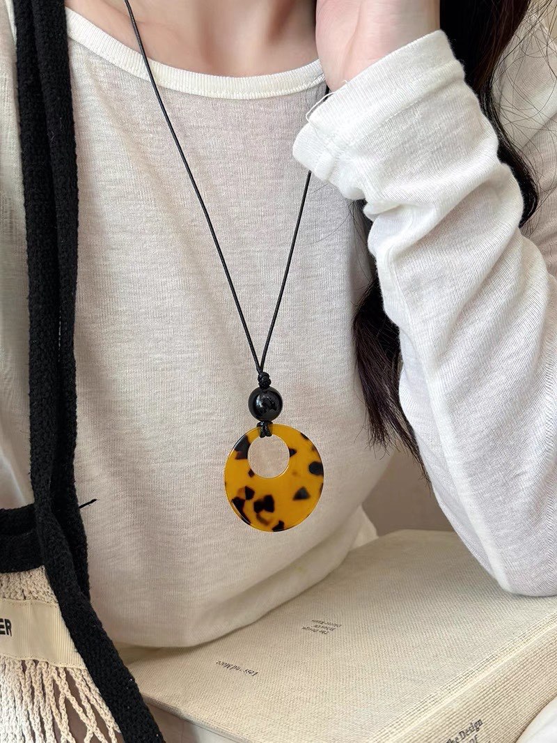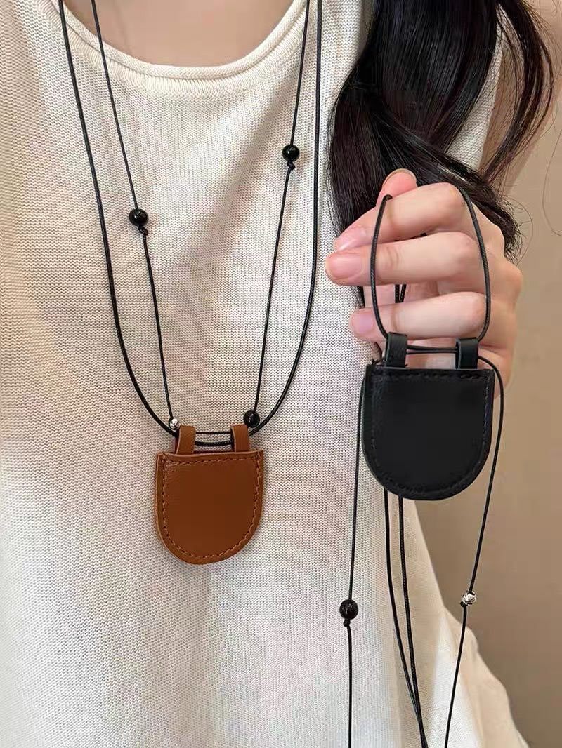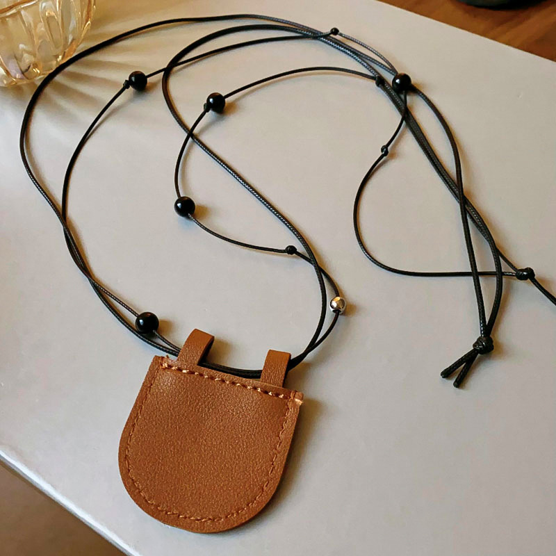 Color: 44#Sweater chain - black - milk tea color - leather rope - oblate