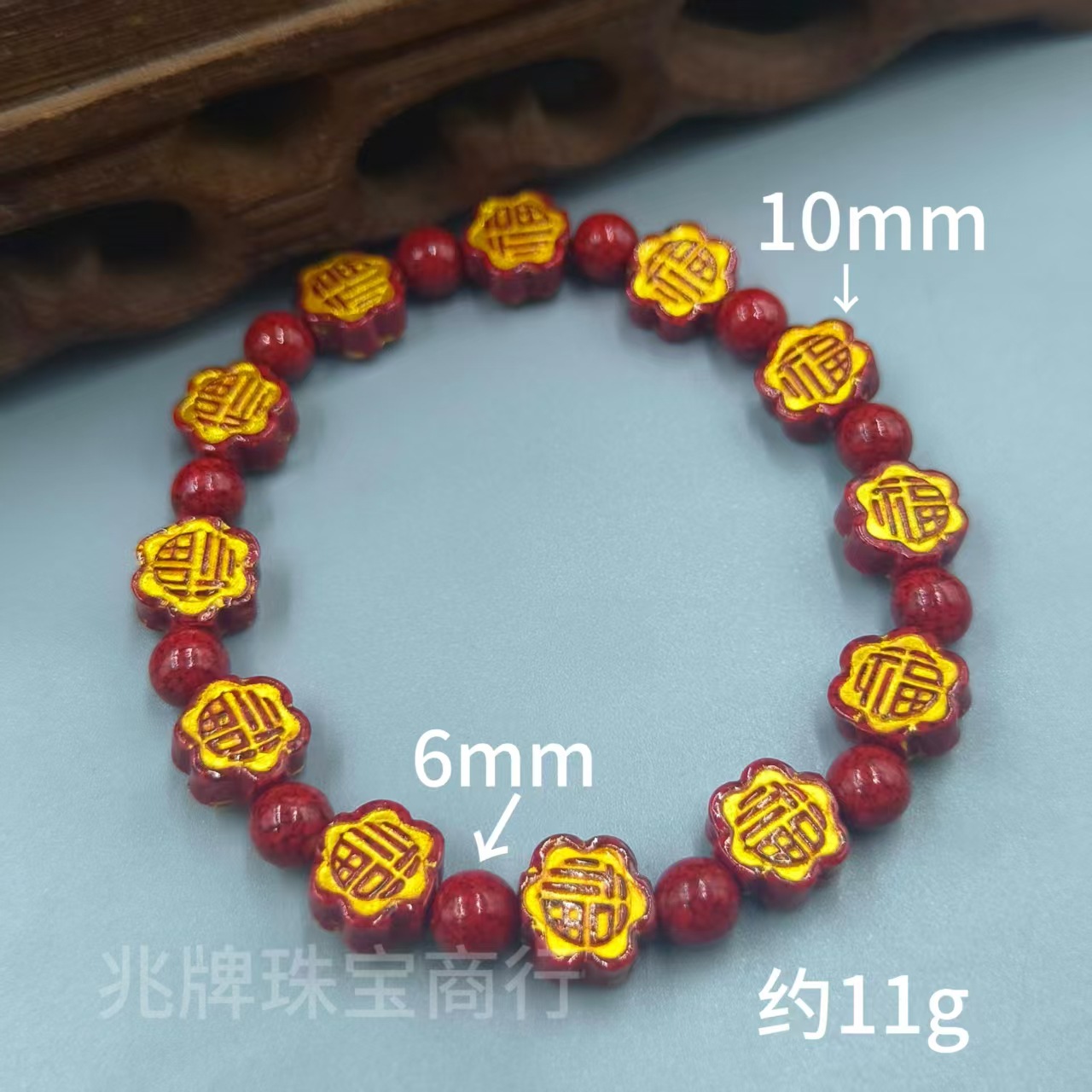Color: Four-leaf flower bead bracelet with the word "fu"