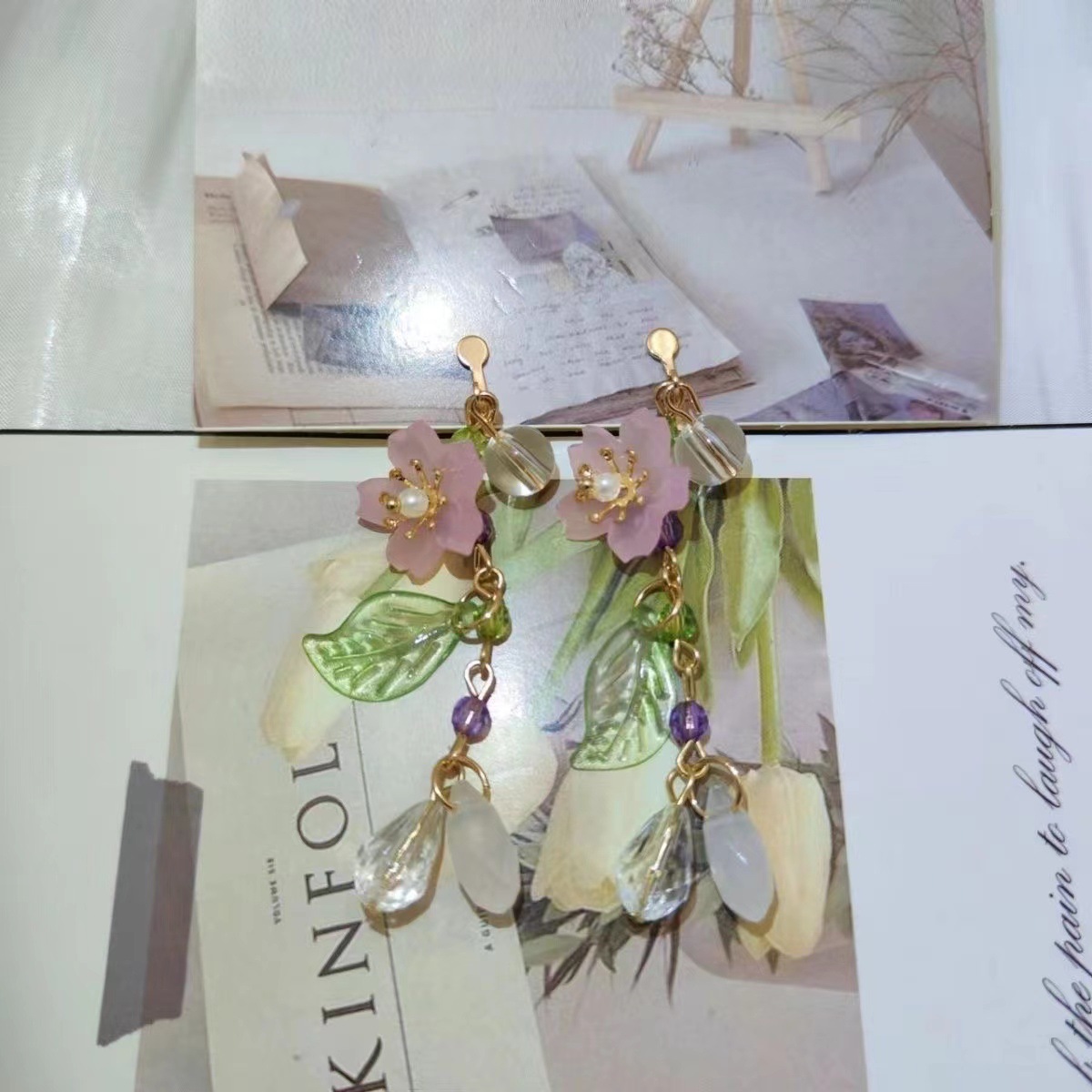 [Peach Blossom Yao Yao Yao] Super Fairy Classical Chinese Style Pink Peach Blossom Tassel Long Earrings Hanfu Girl Earrings