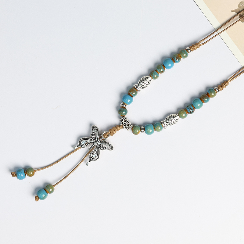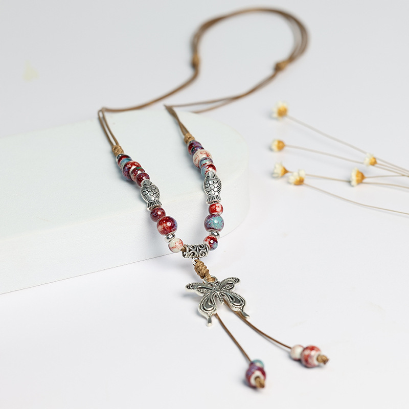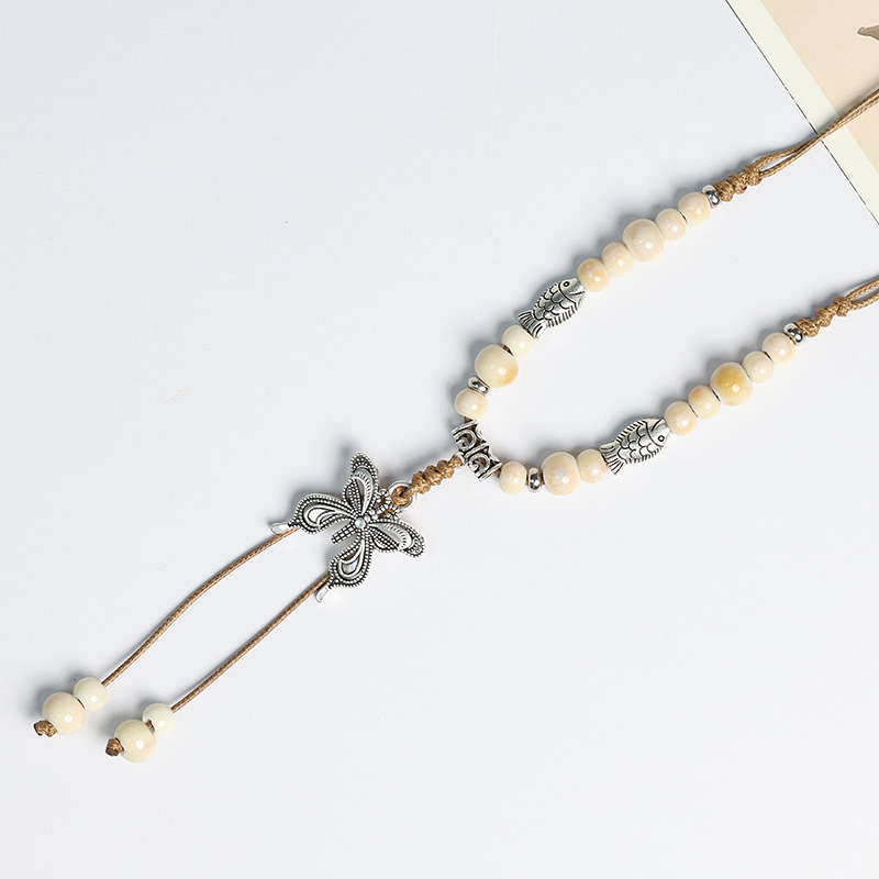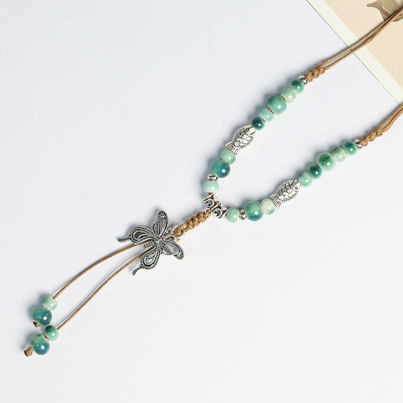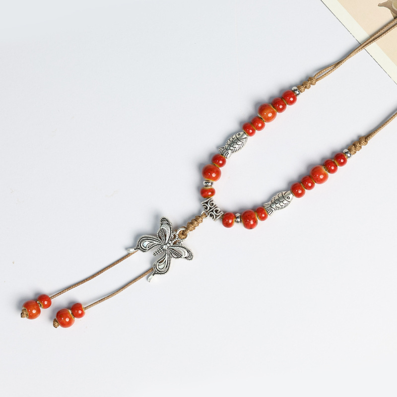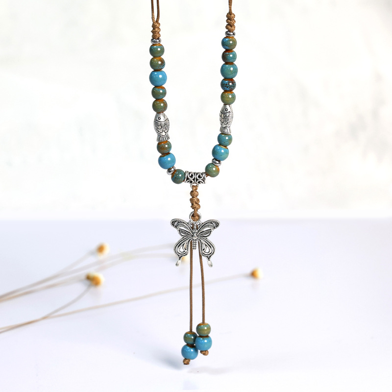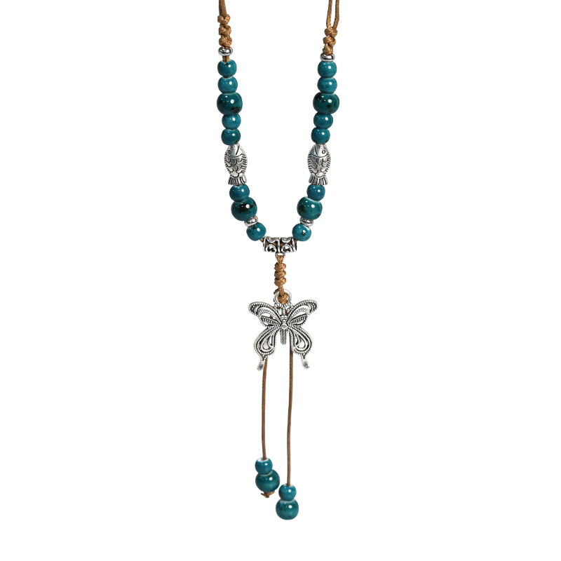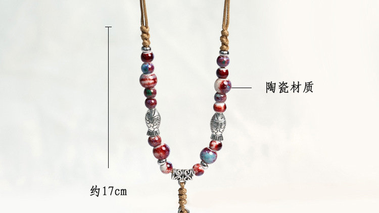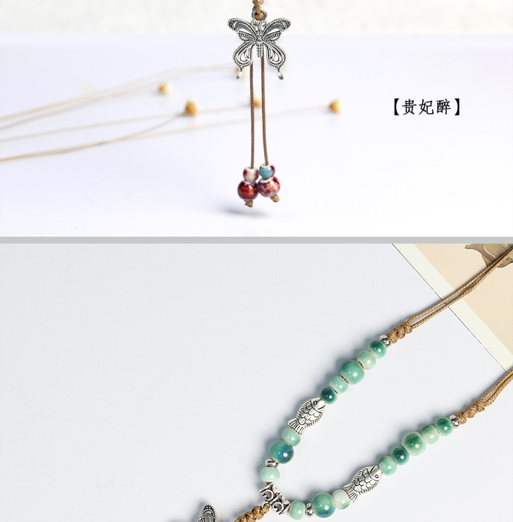 Ethnic Style Antique Jingdezhen Necklace Long Ceramic Woolen Chain Women's Autumn and Winter New Hanfu Cheongsam Elegant Accessories