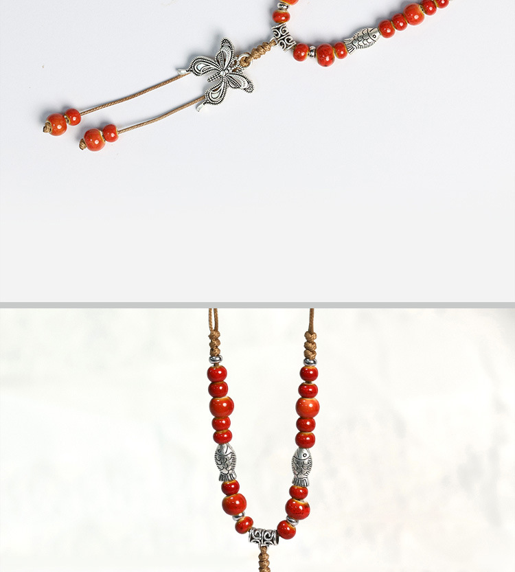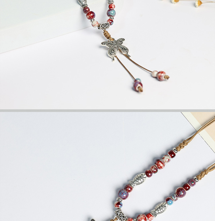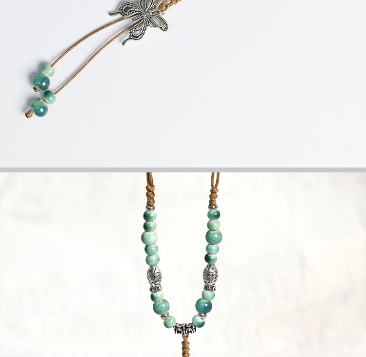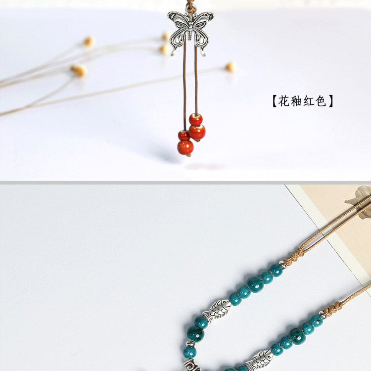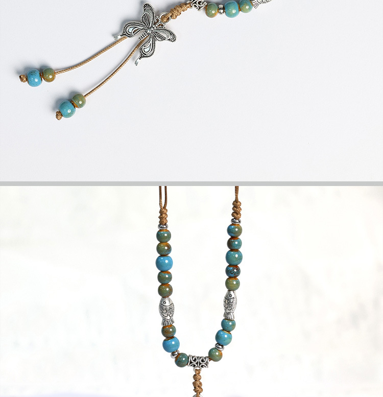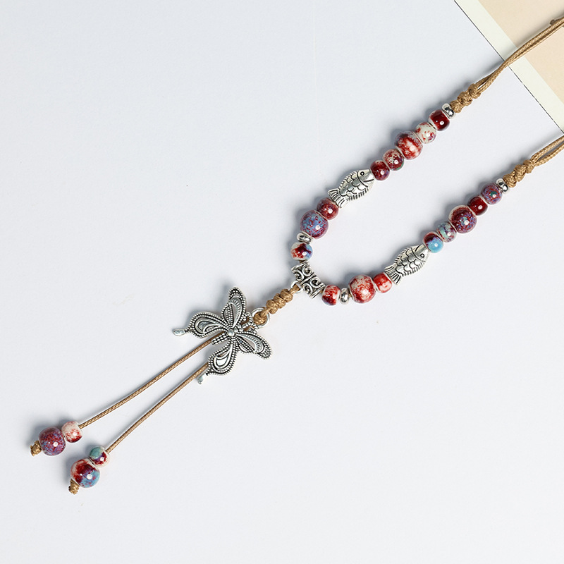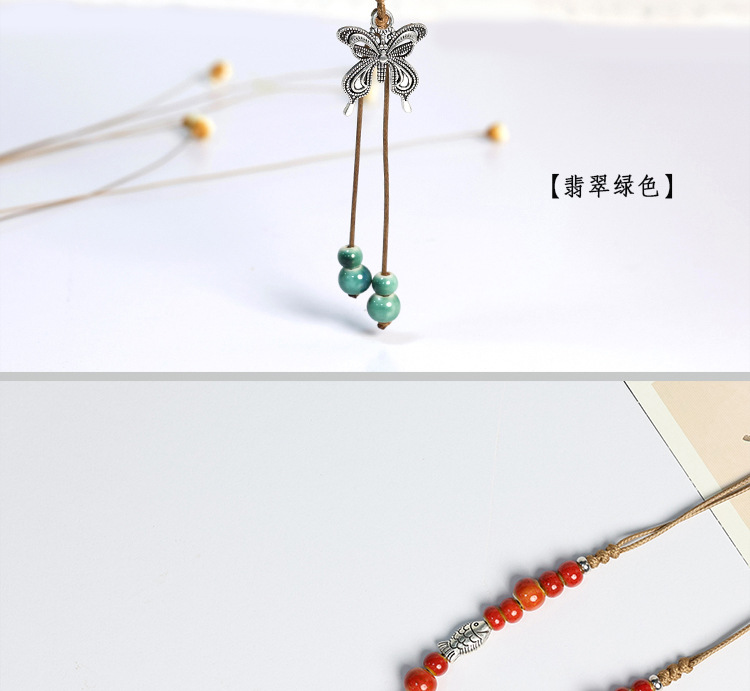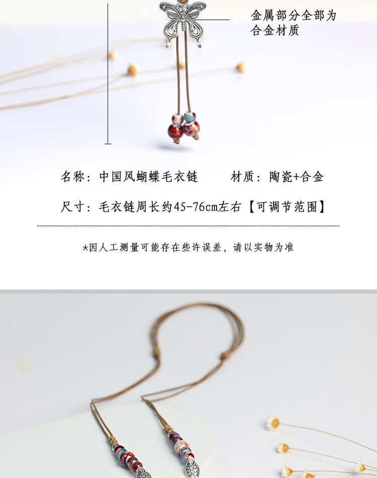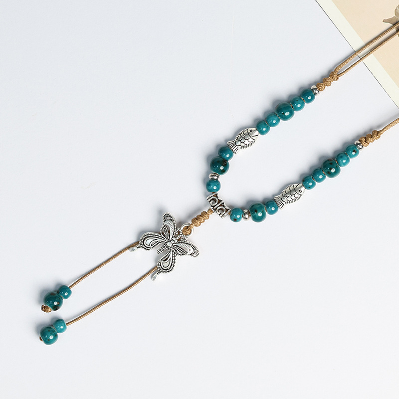 Ethnic Style Antique Jingdezhen Necklace Long Ceramic Woolen Chain Women's Autumn and Winter New Hanfu Cheongsam Elegant Accessories