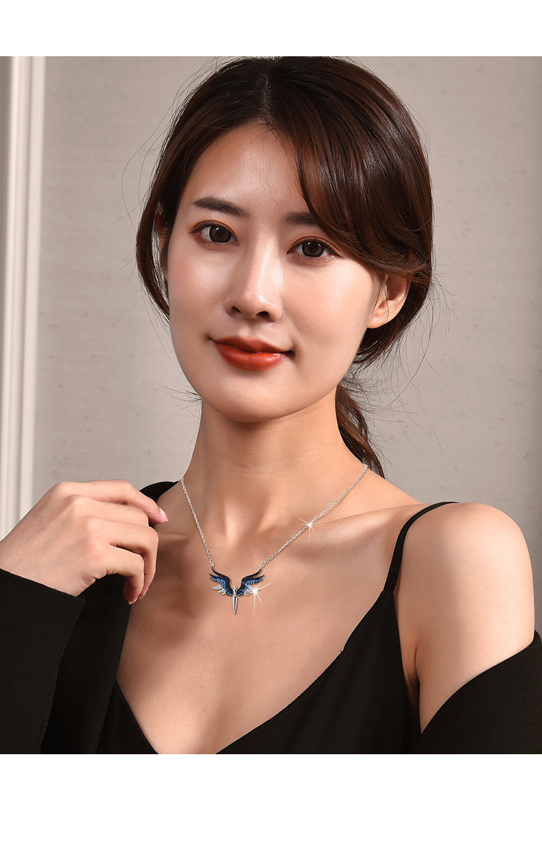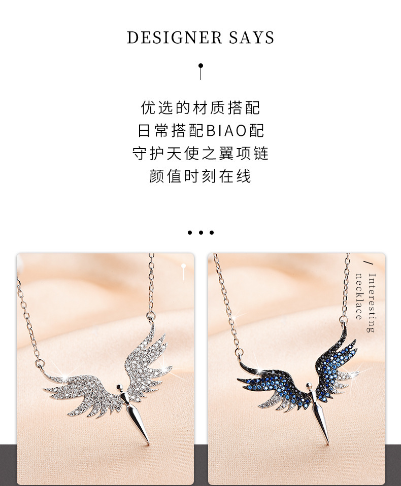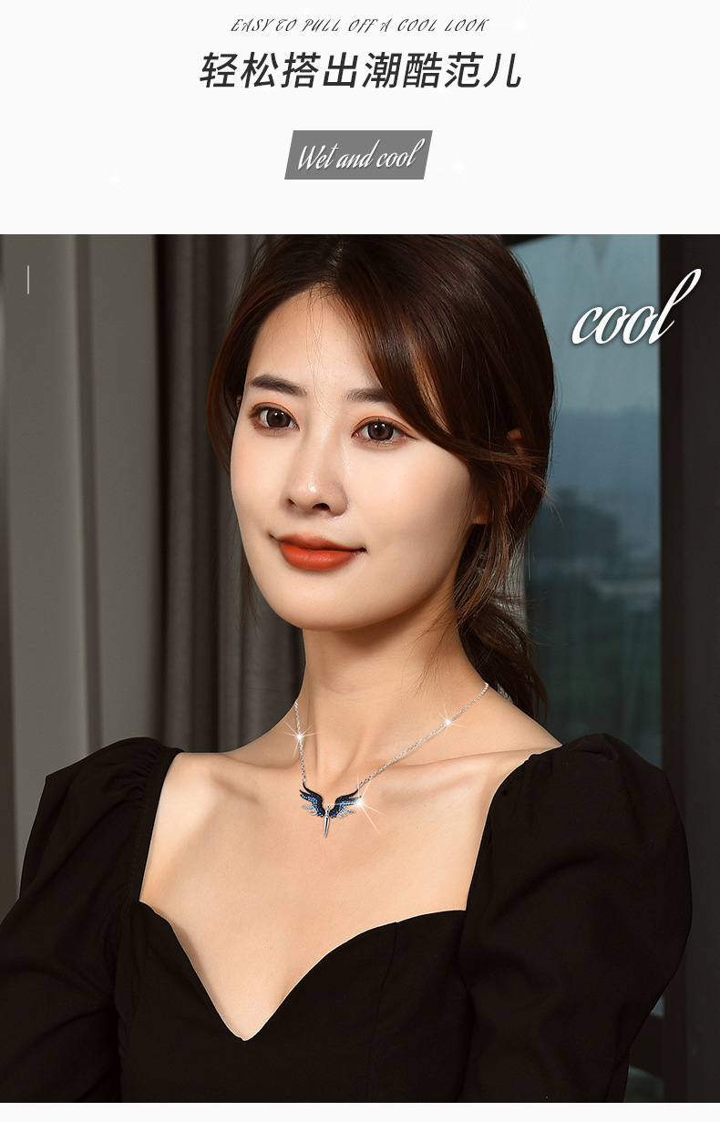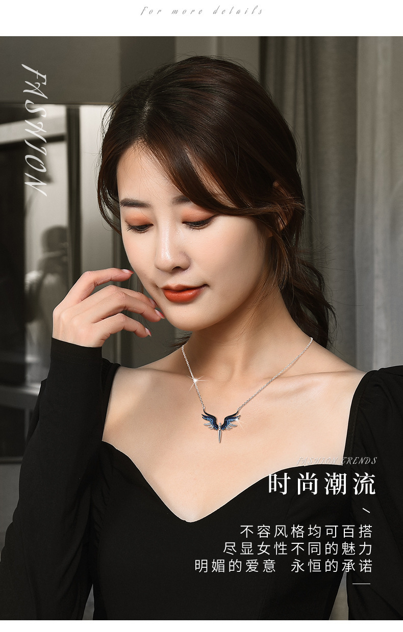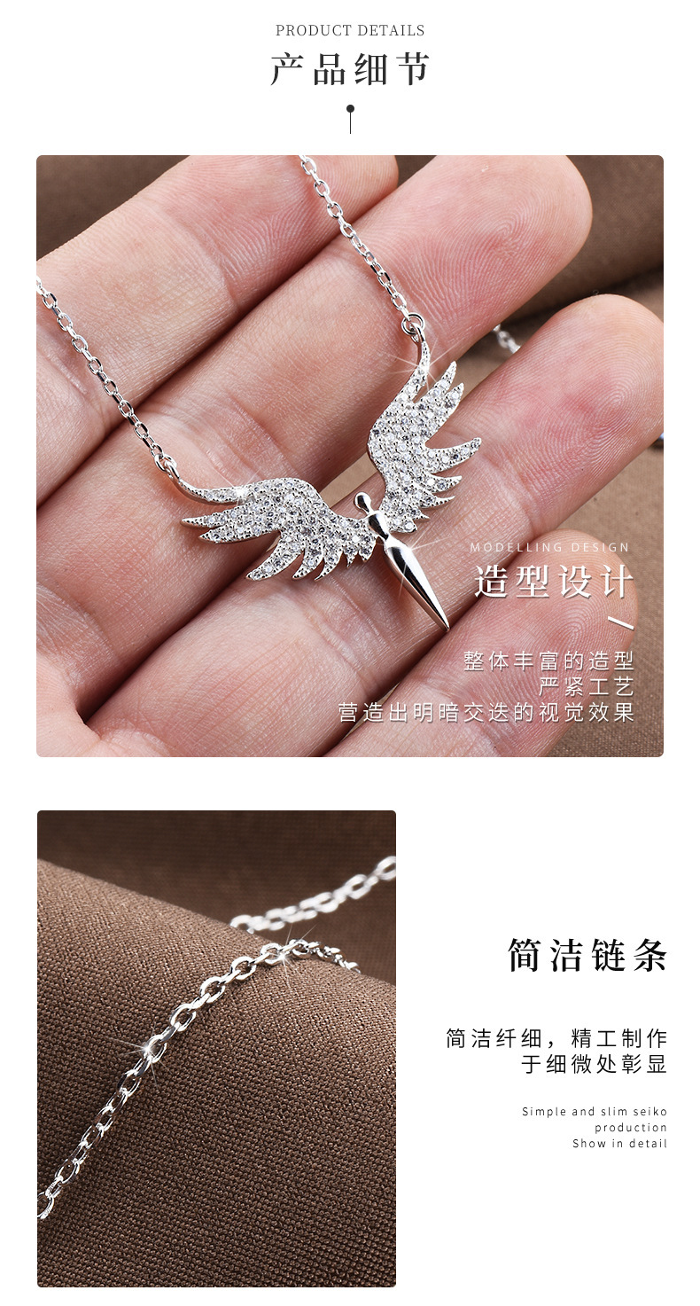 Cross-border explosive single angel wing necklace men's and women's clavicle chain creative design exquisite micro-inlaid pendant jewelry wholesale