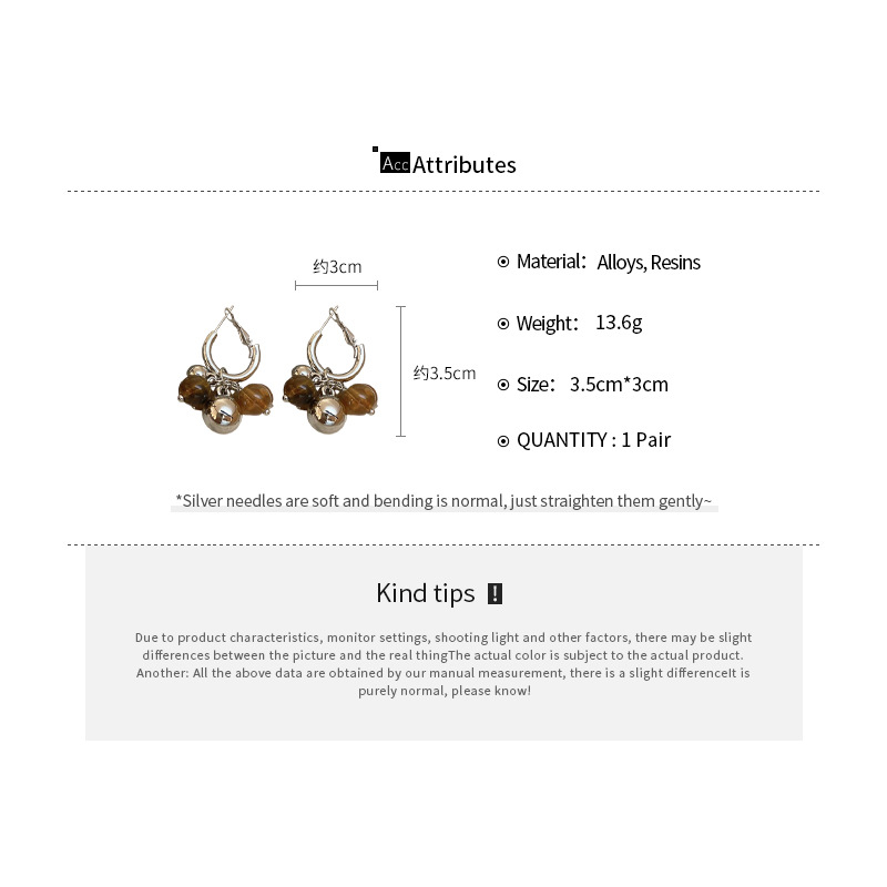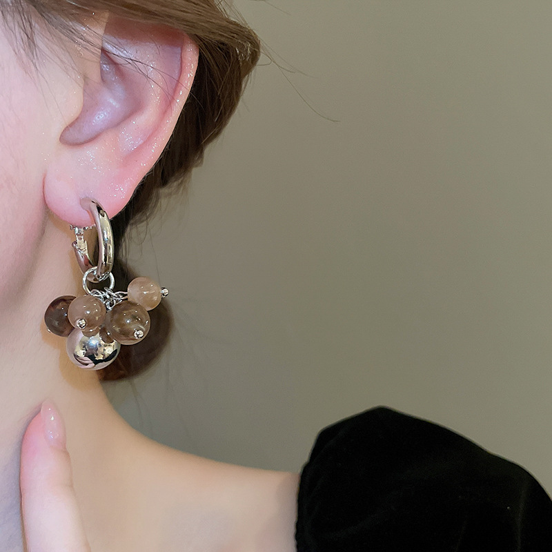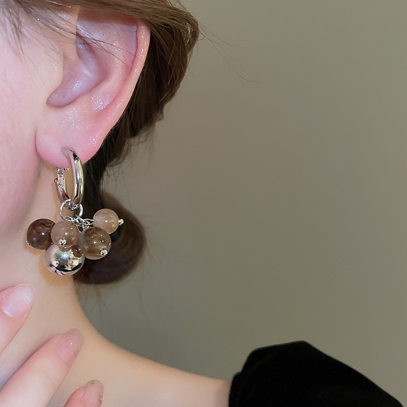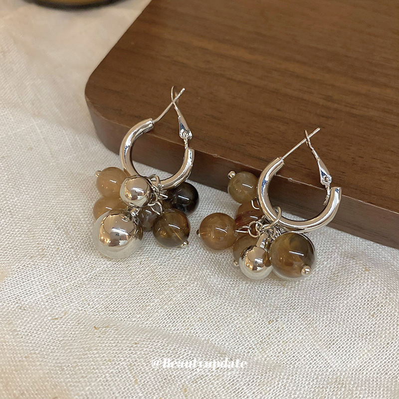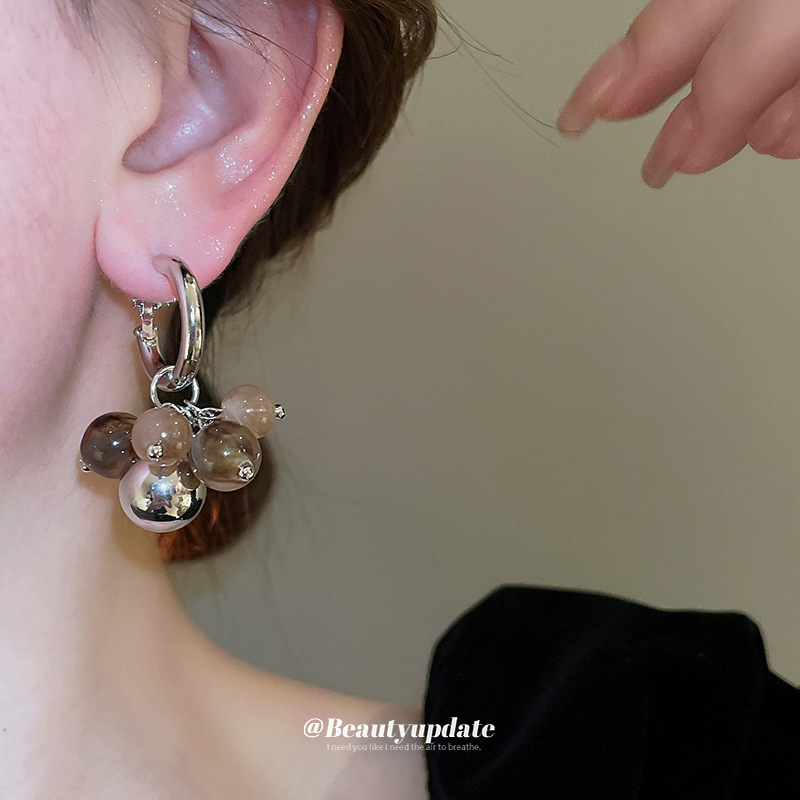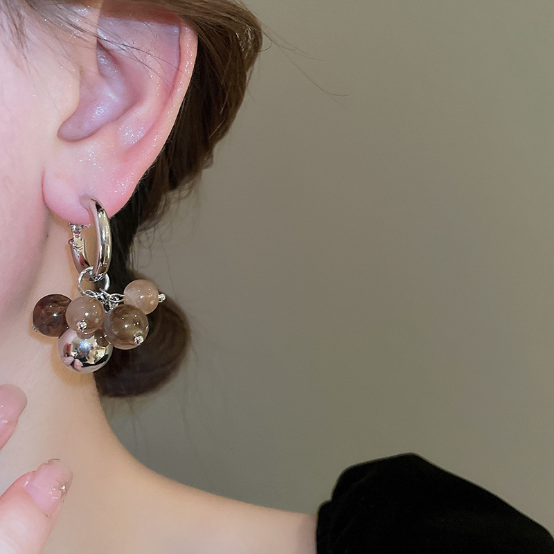 Silver Needle Gradient Resin Ball Maillard Earrings Internet Popular New Commuter Earrings Y2K Trendy Design Sense Earrings for Women