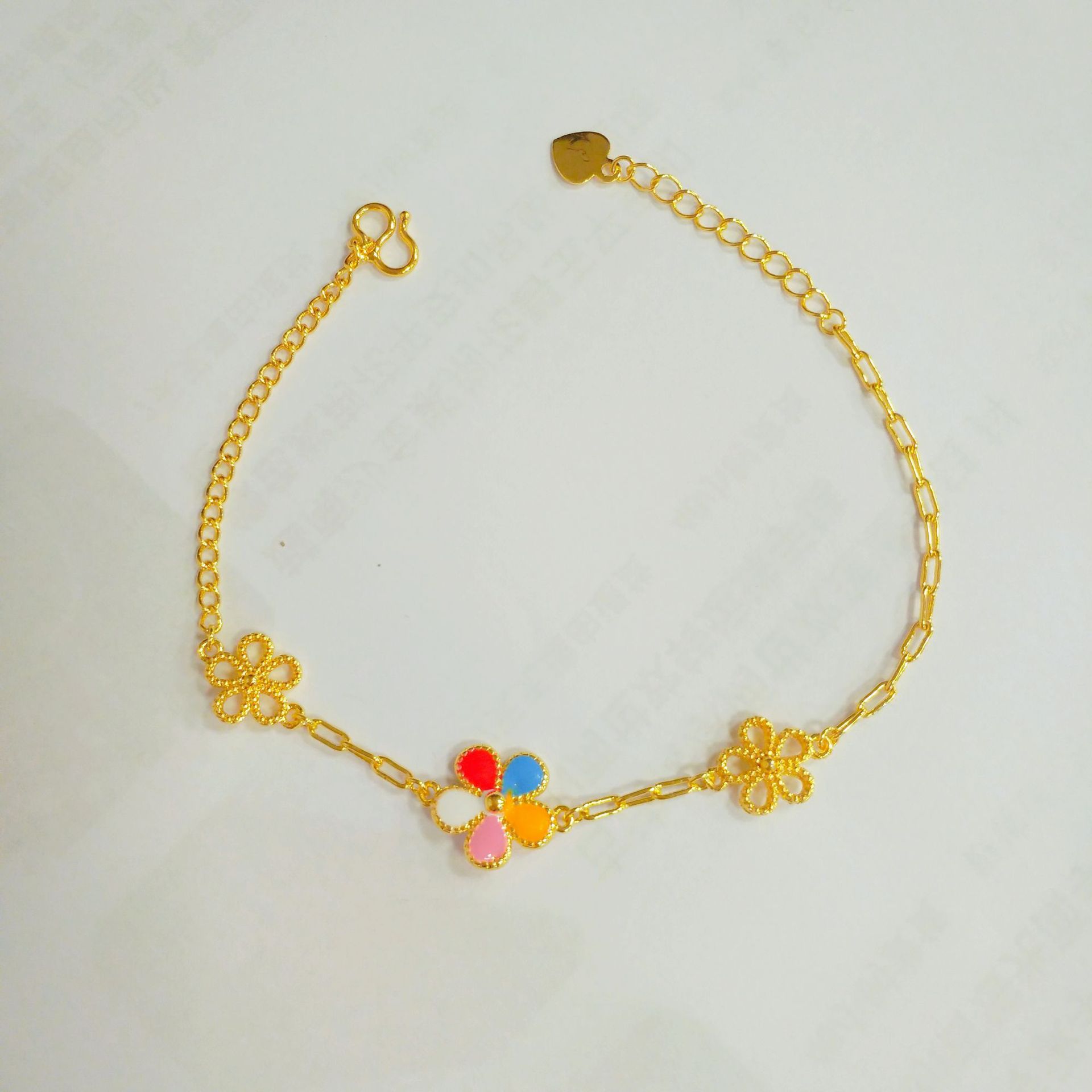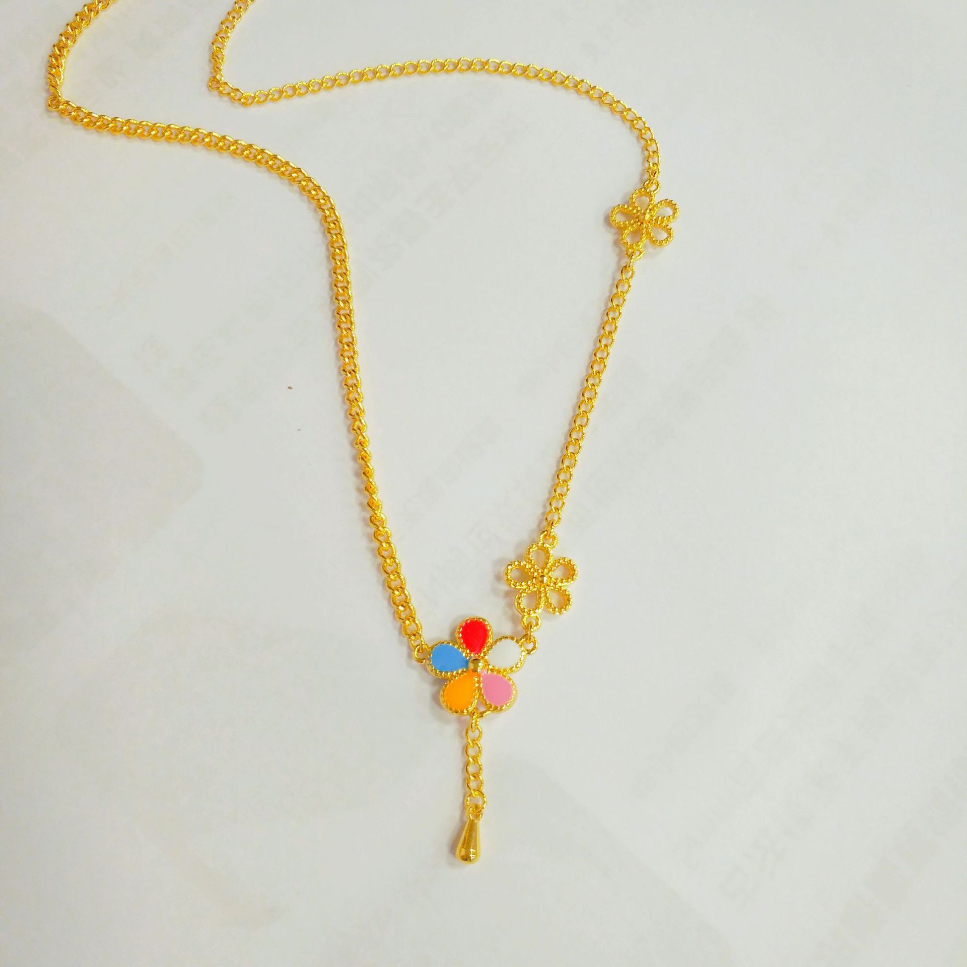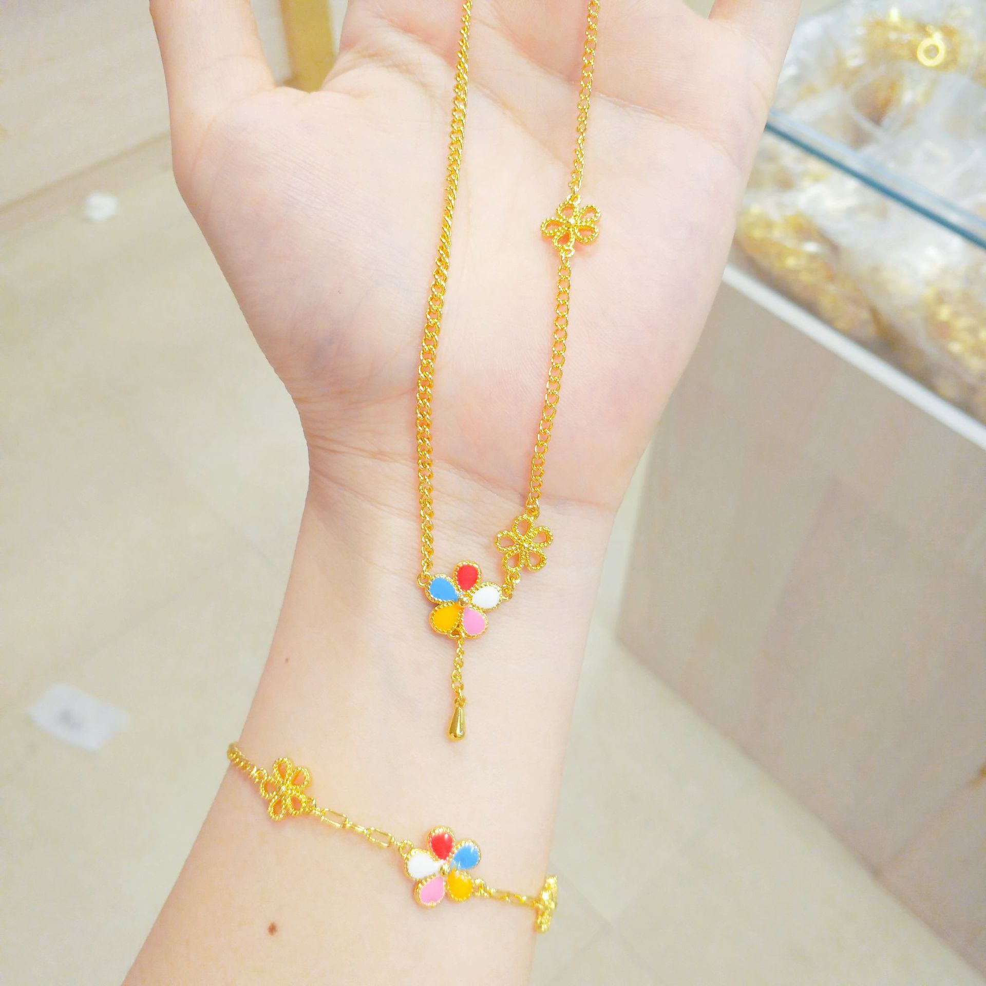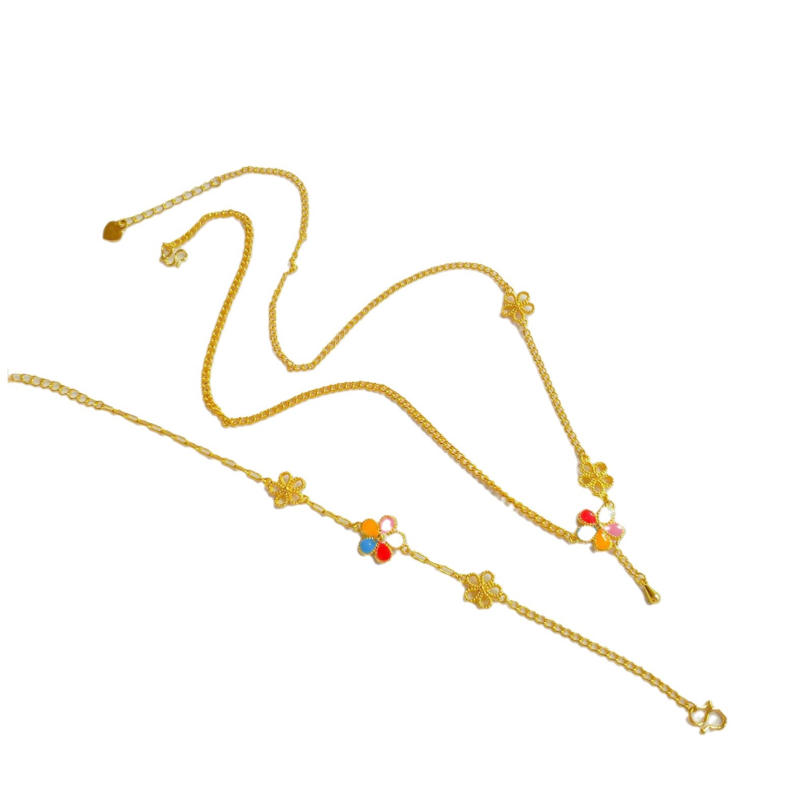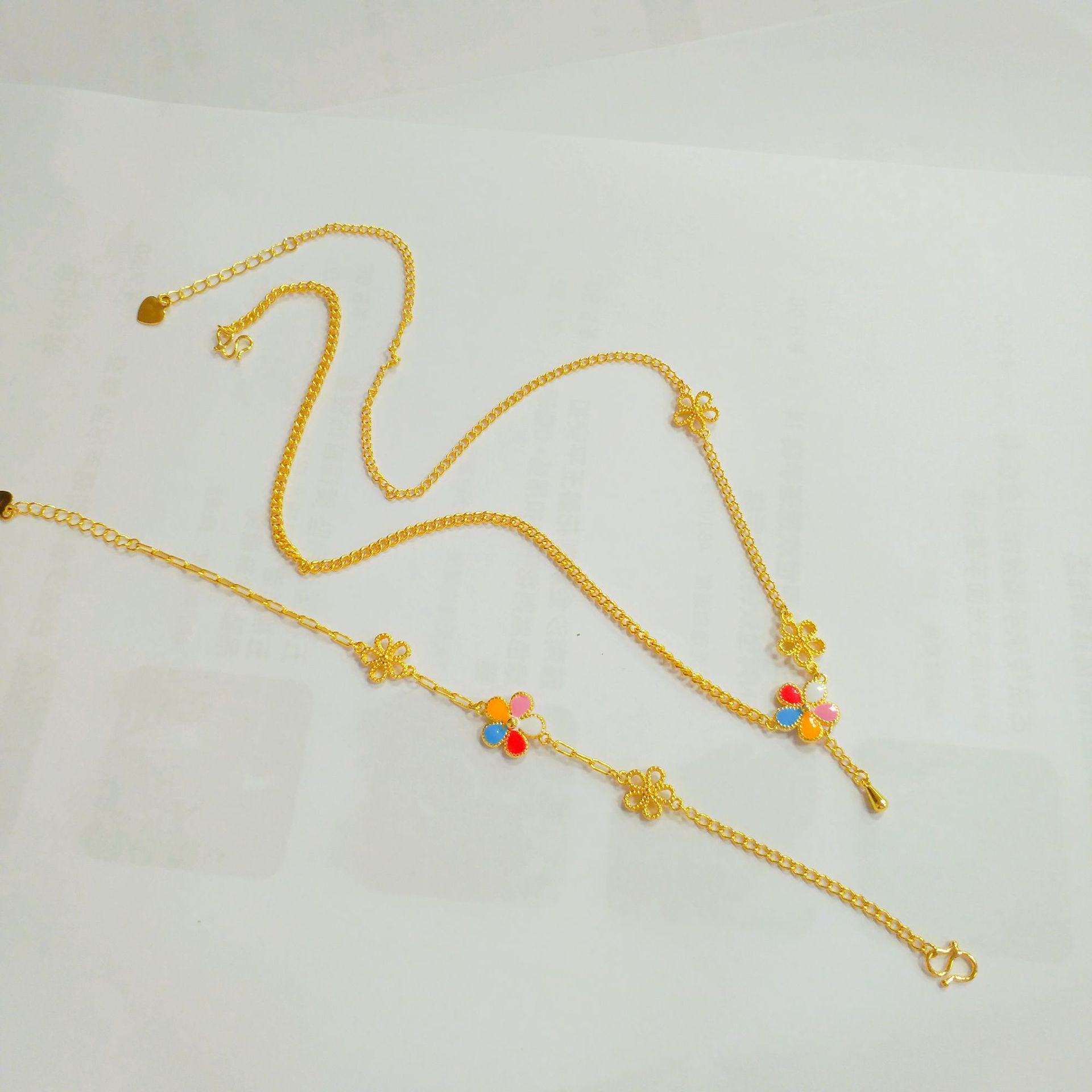 Gold color multicolored petal necklace bracelet suit women's temperament Joker sand gold five flowers lucky grass supply wholesale