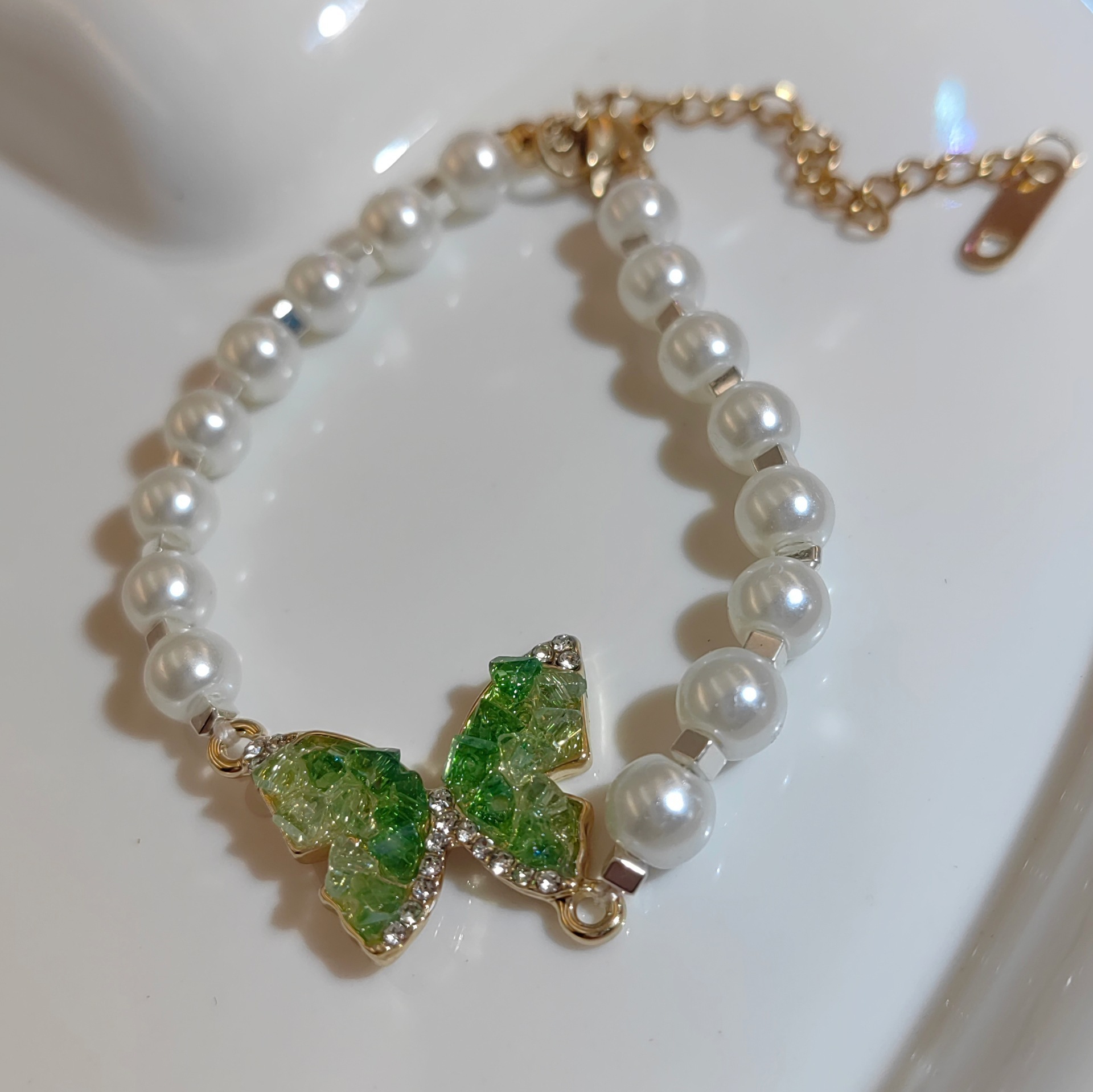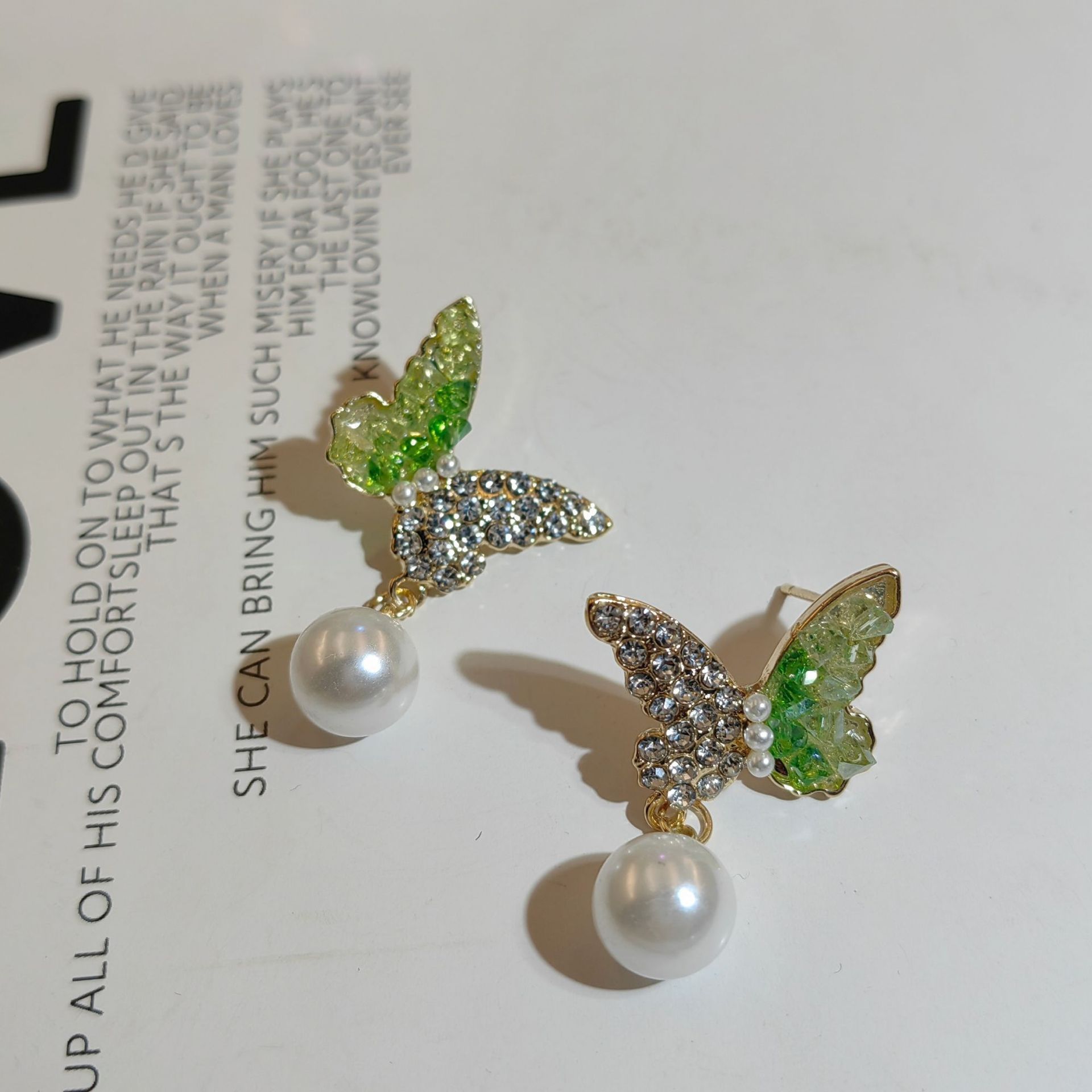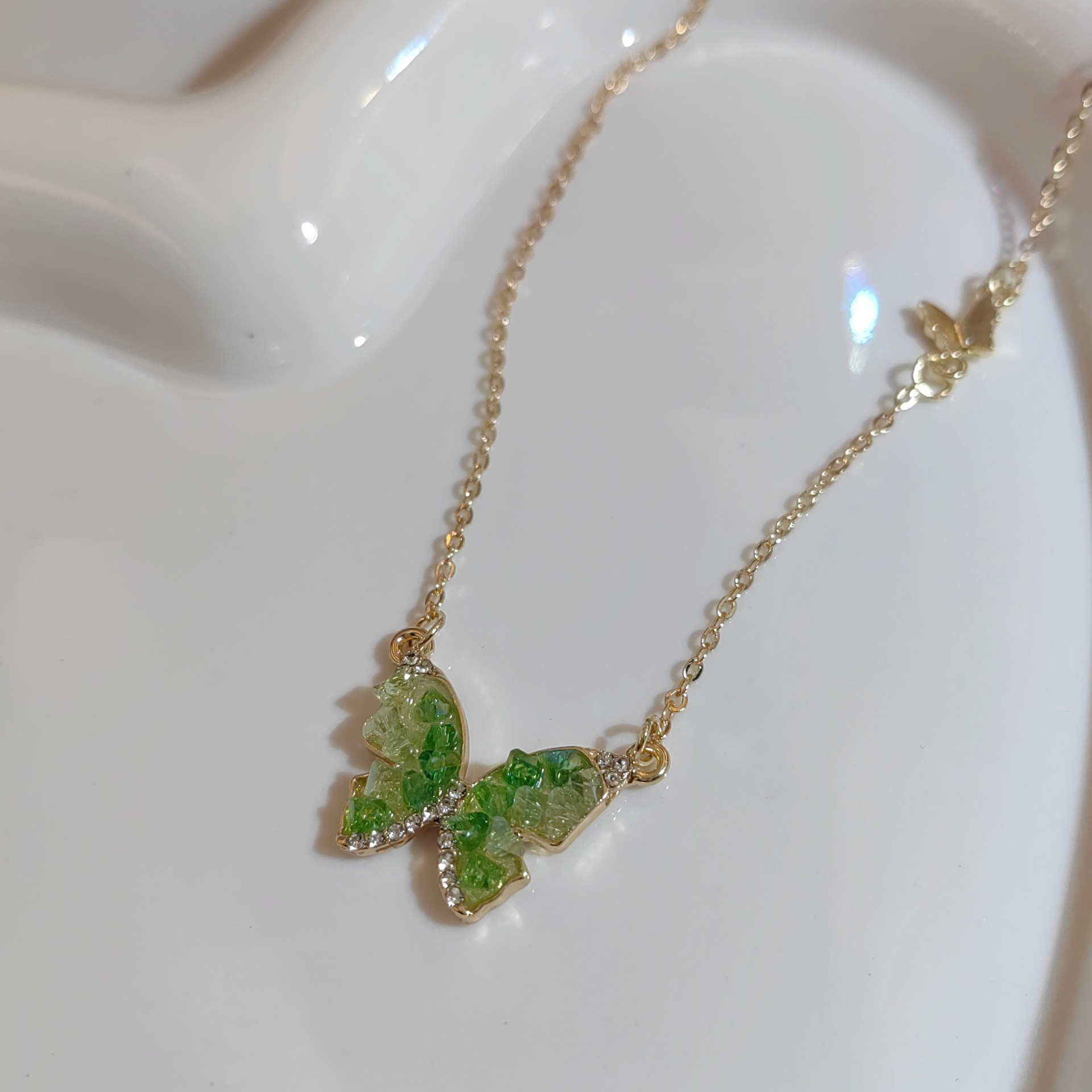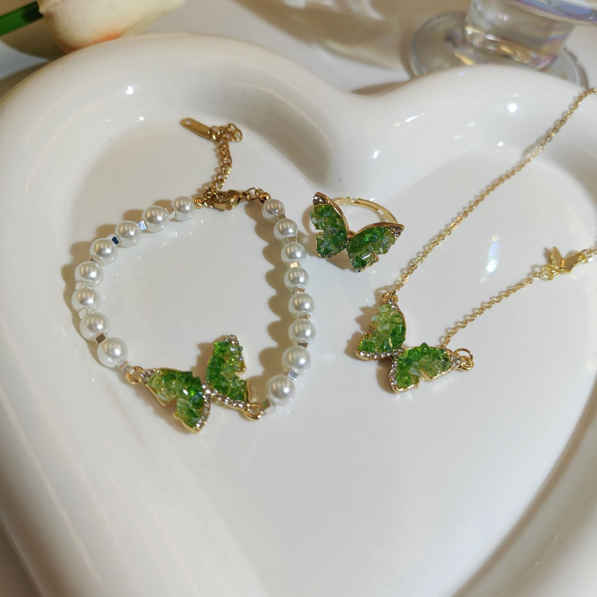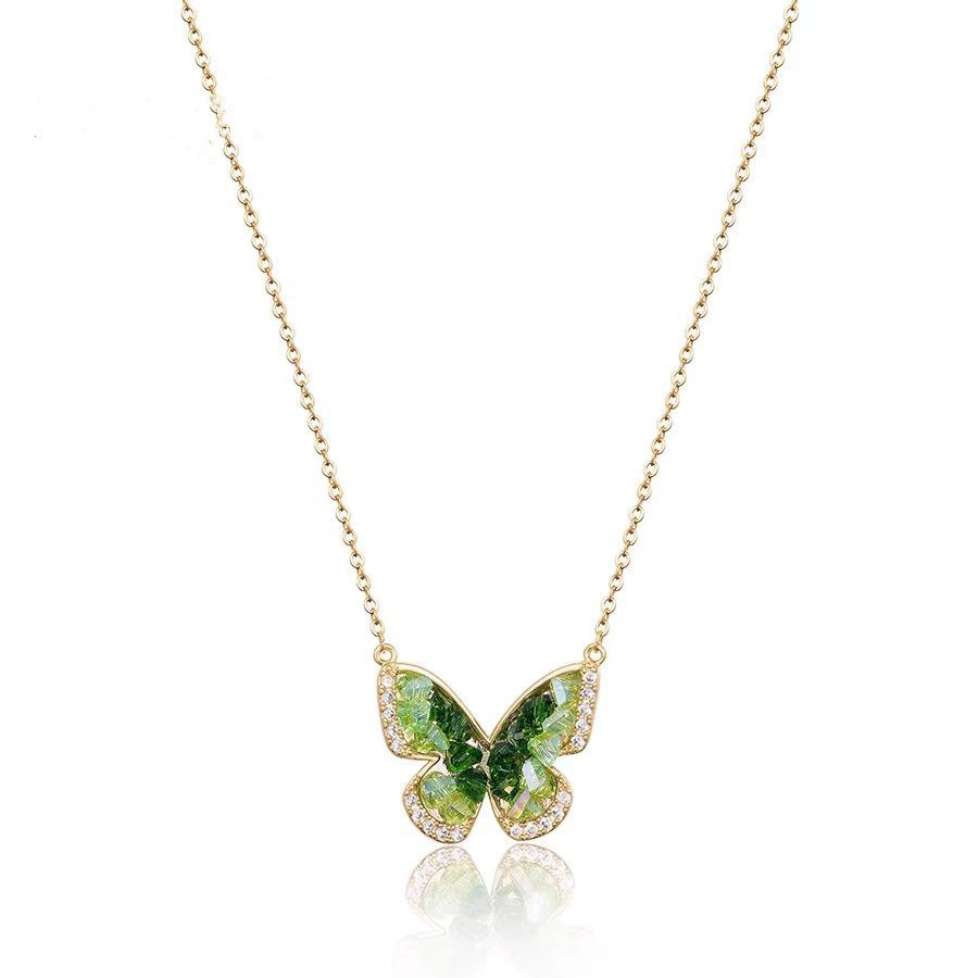 Fresh fashion super fairy green earrings butterfly necklace female temperament high sense clavicle bracelet necklace wholesale