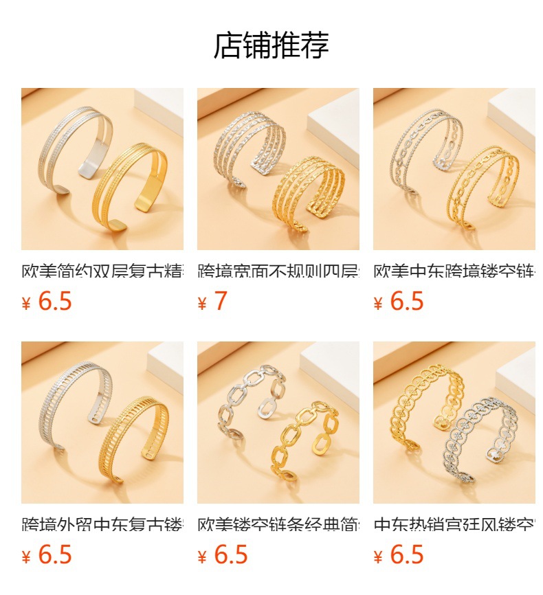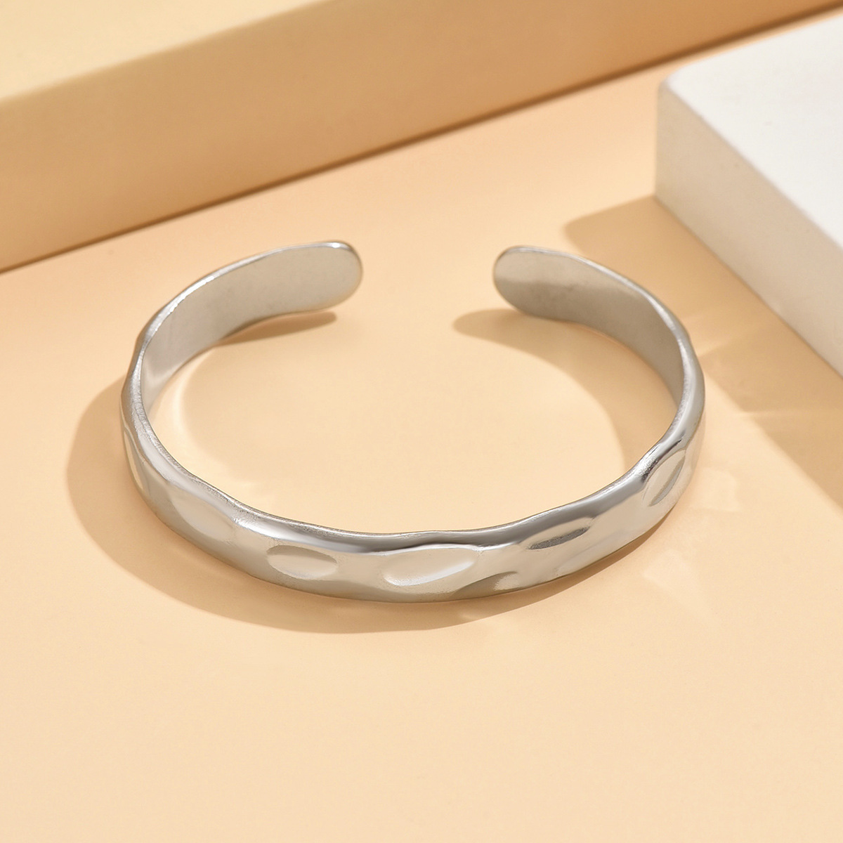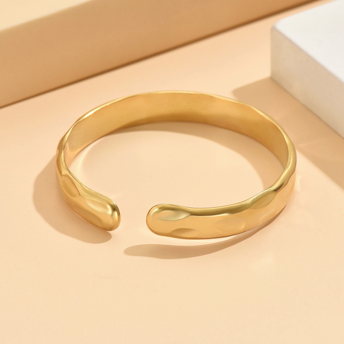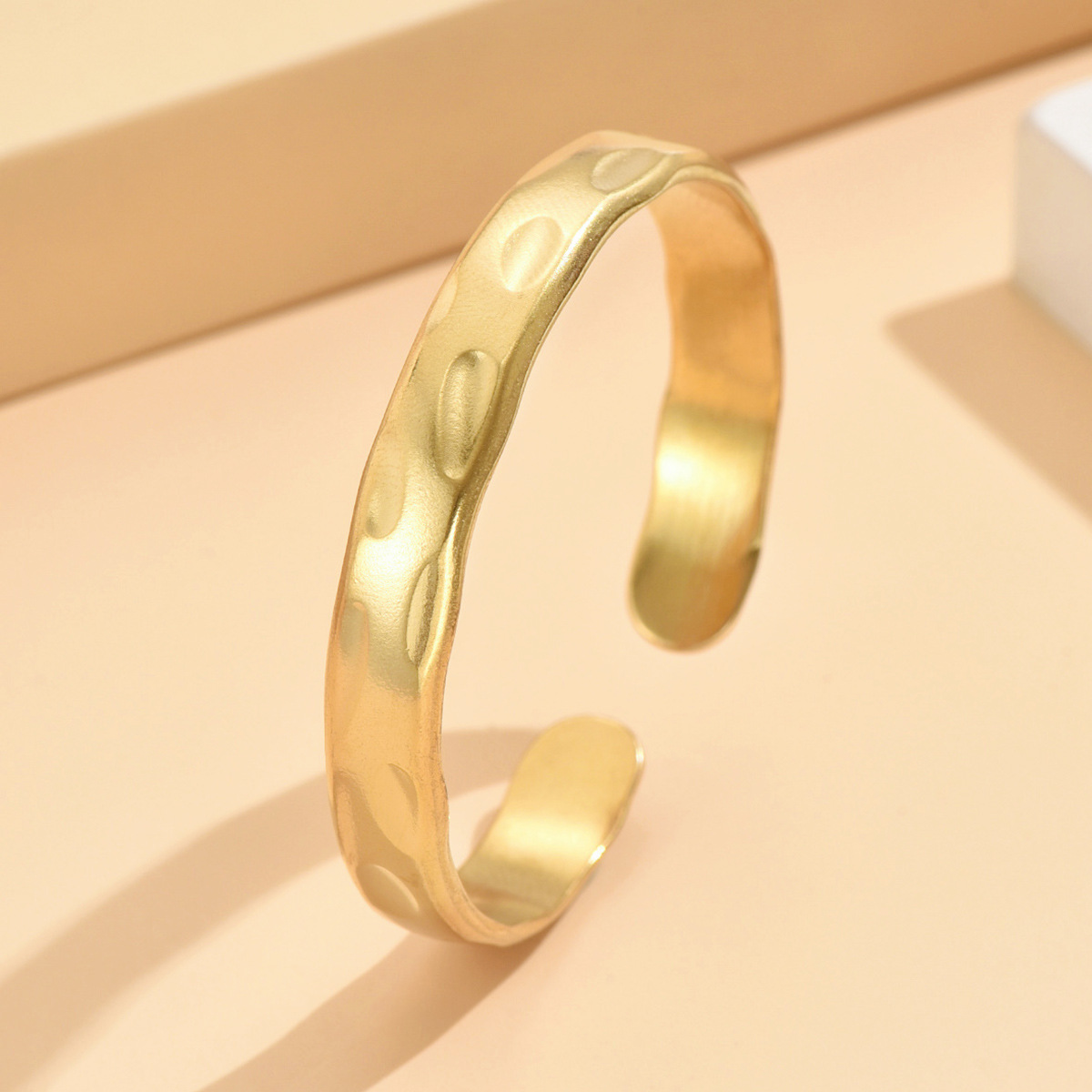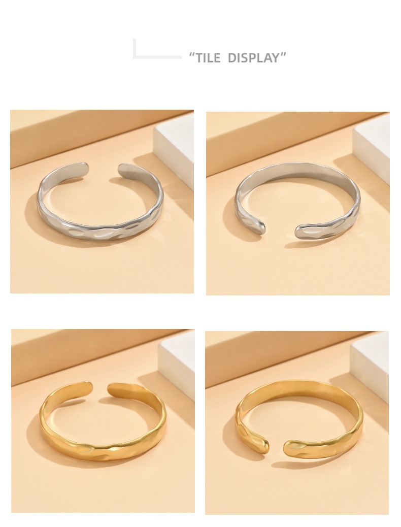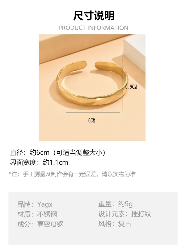New Cross-border European and American Retro Baroque Narrow Edition Hammer Pattern Open Stainless Steel Bracelet Vacuum Gold-plated Bracelet for Women