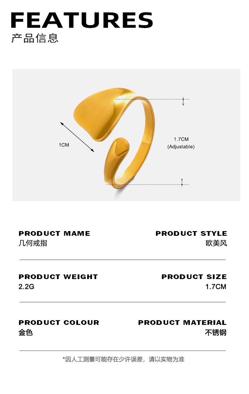 European and American fashion fashion stainless steel geometric smooth ring personality hip hop niche design popular ring ladies