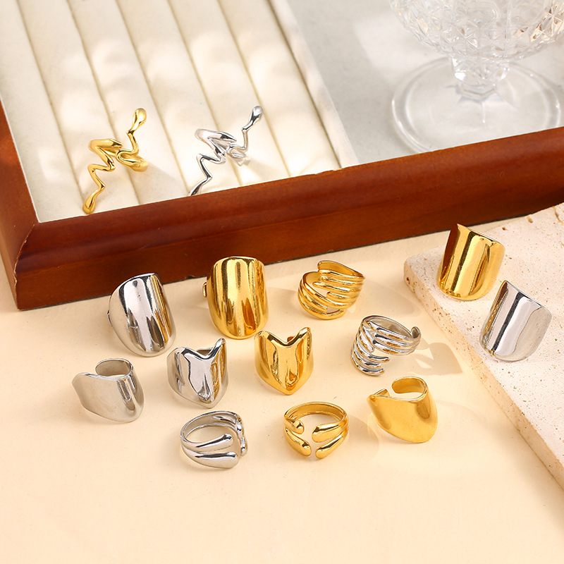 Color: Wavy wide open ring-steel color