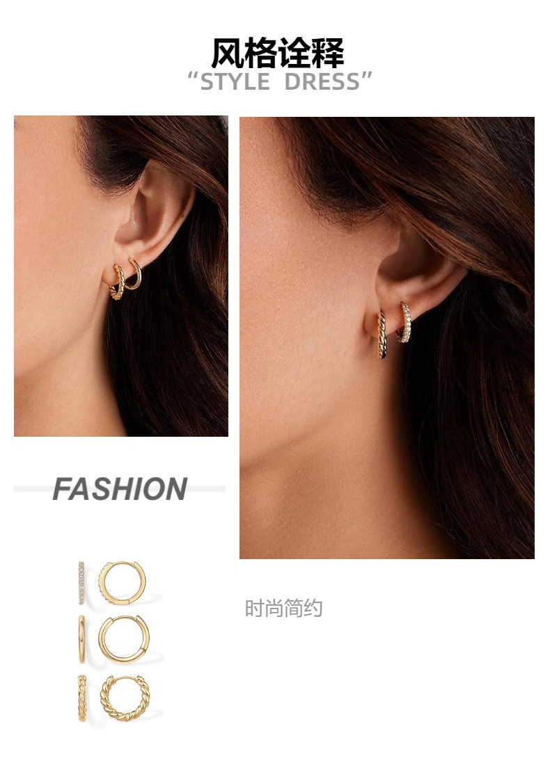 925 Tremella Buckle Women's Men's Bold Earrings Earrings New Niche Design Sense Simple Elegant Ins Style Compact Earrings