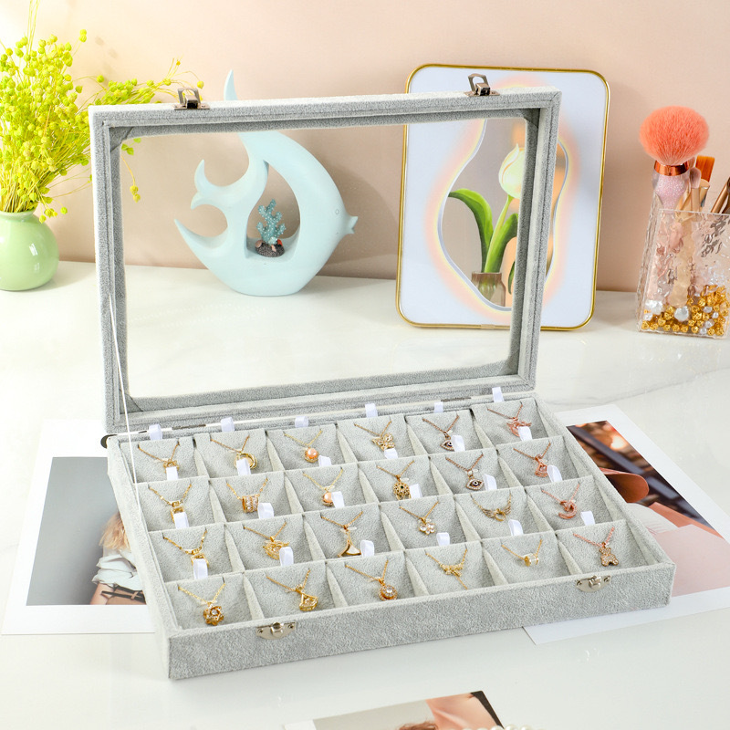 in stock Large Ice Fleece Jewelry Box with Lid Jewelry Box Pearl Necklace Storage Box 18 Pendant Display Plate