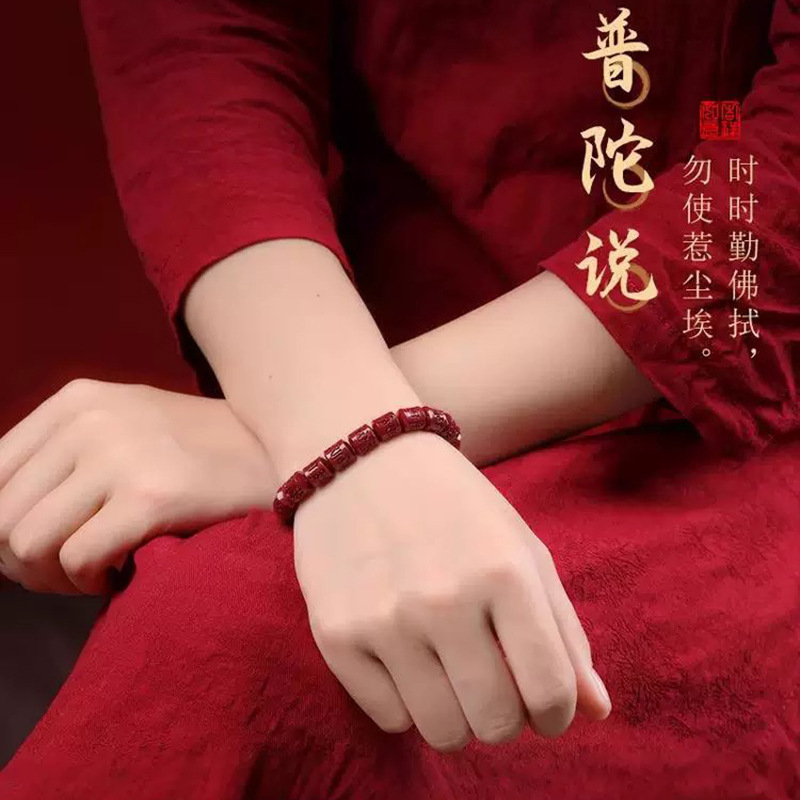 Cinnabar Bracelet Six-Character Mantra Bucket Bead Bracelet Low Content Purple Gold Sand Beaded Year of the Snake Gift Bracelet