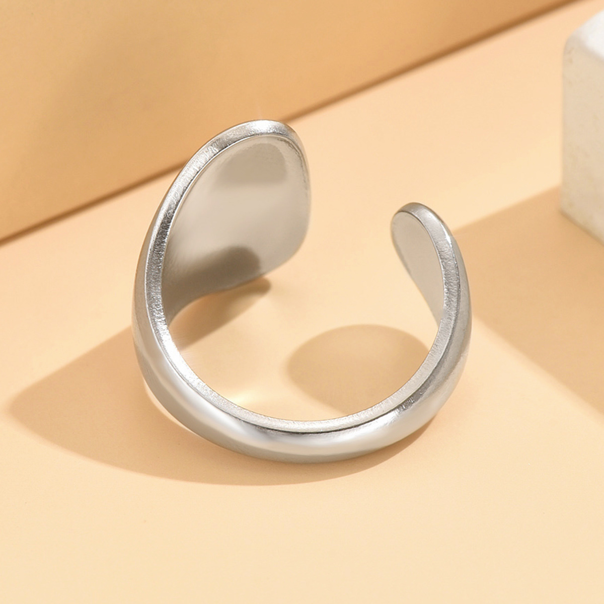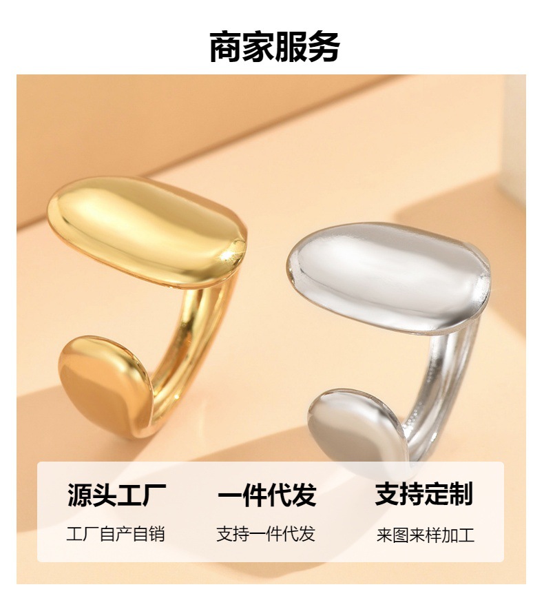 Cross-border supply retro Baroque style large smooth stainless steel ring women's irregular geometric open ring wholesale