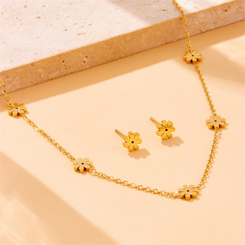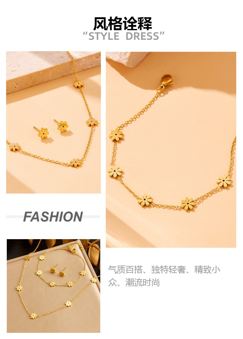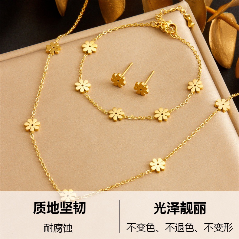 Europe and the United States cross-border fashion all-match high-grade photosensitive surface gold-plated stainless steel daisy flower stud earrings bracelet necklace suit