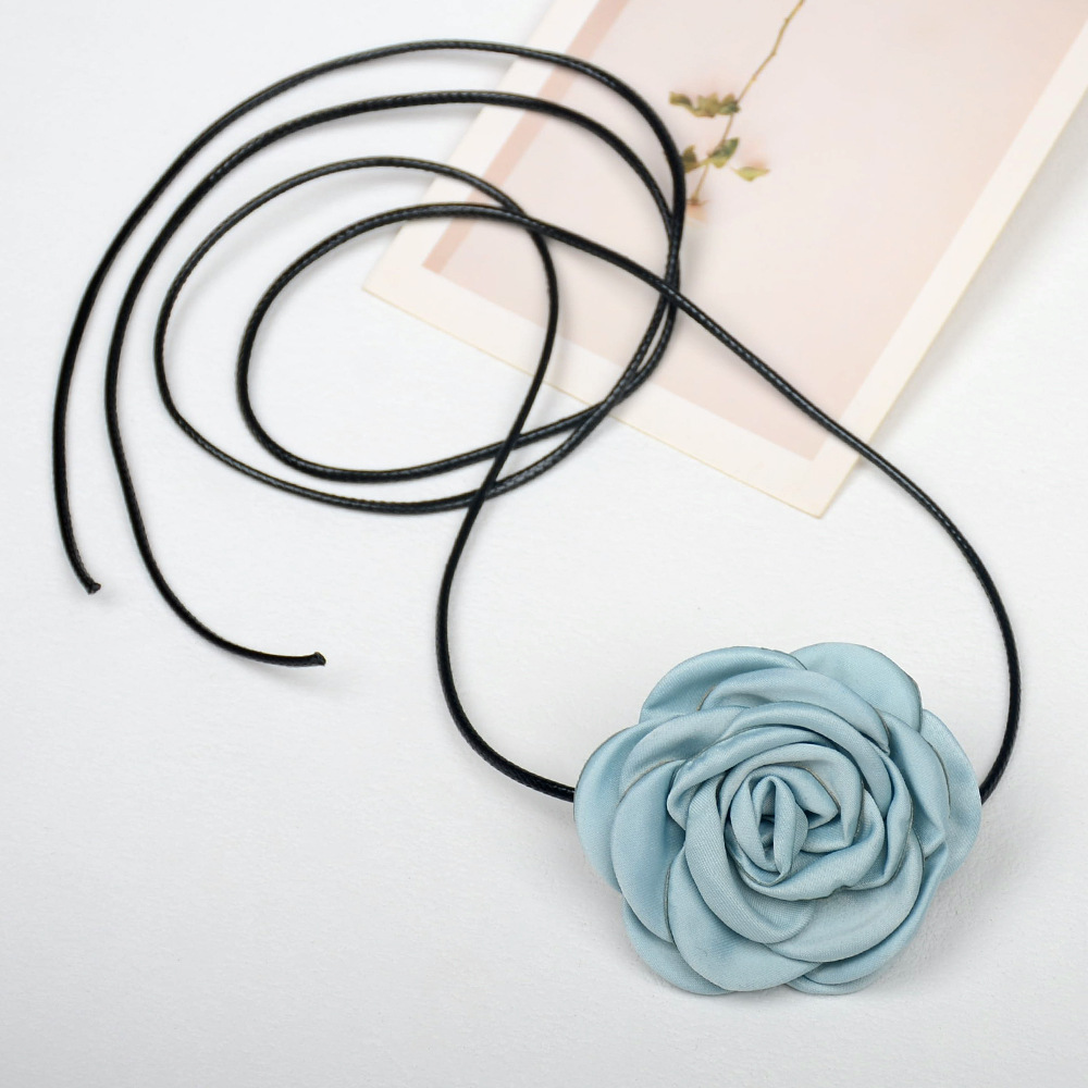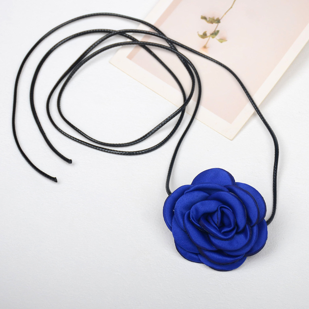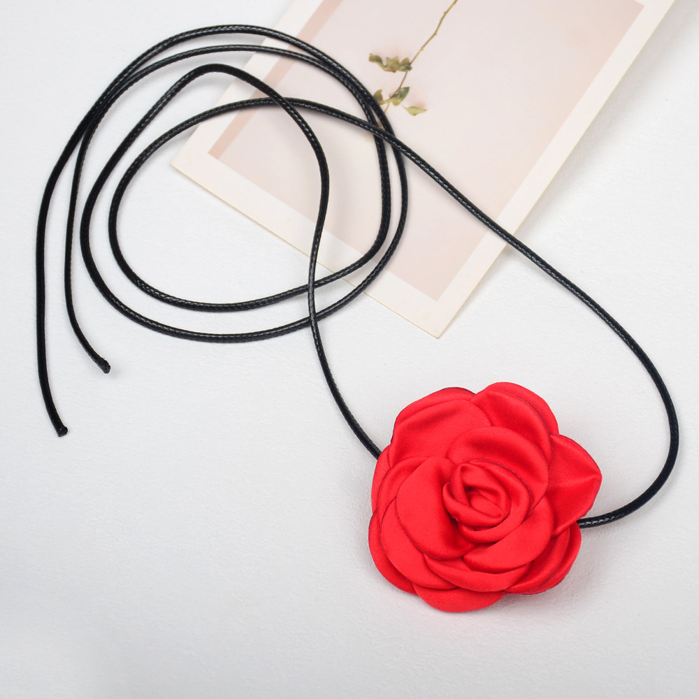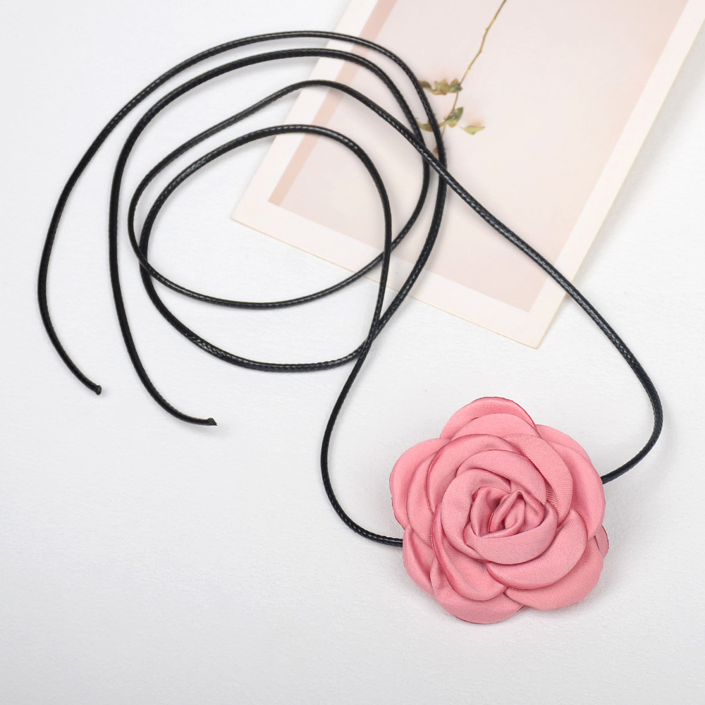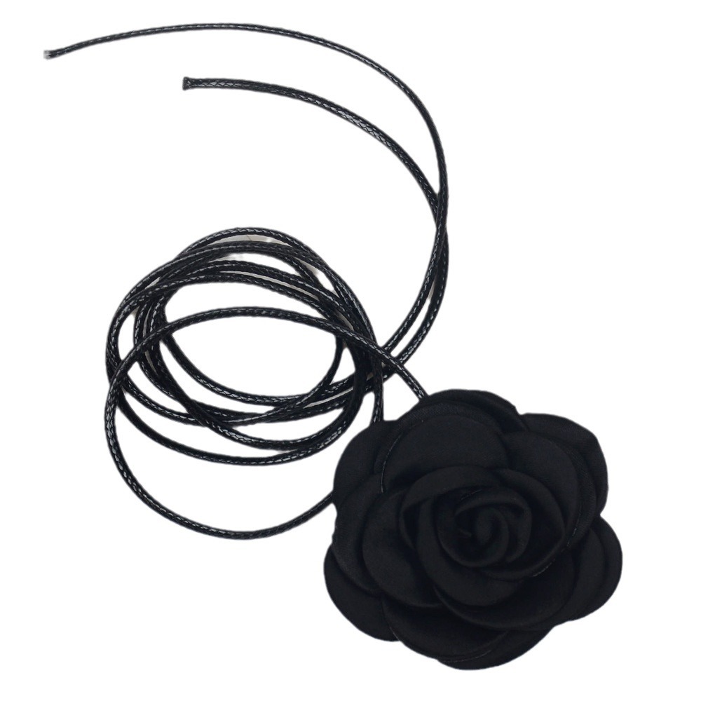 【名称】:复古时尚绑带山茶玫瑰花朵 甜美颈链立体花朵choker项链腰饰批发
