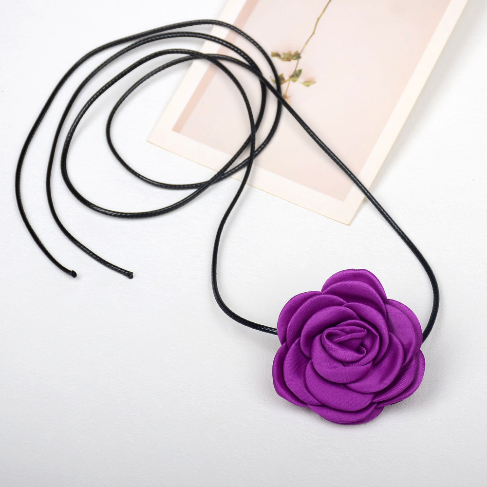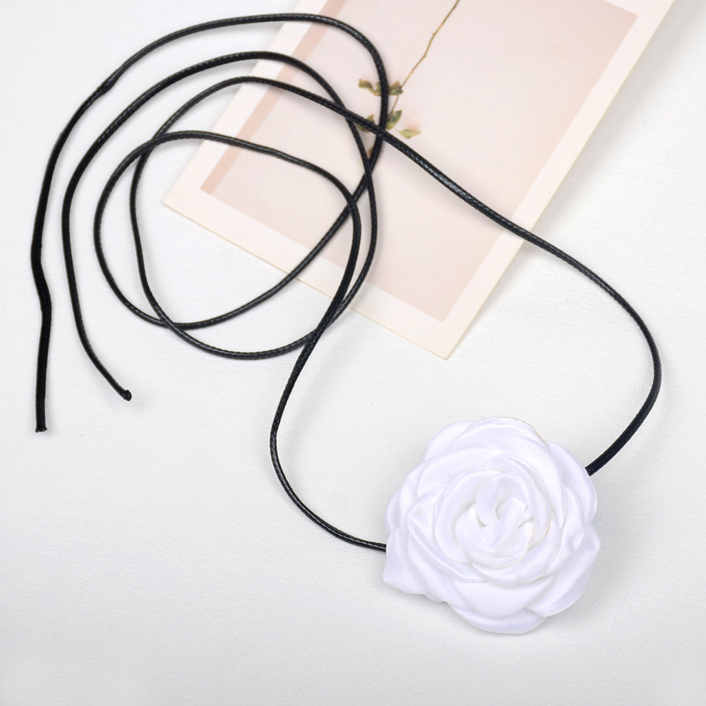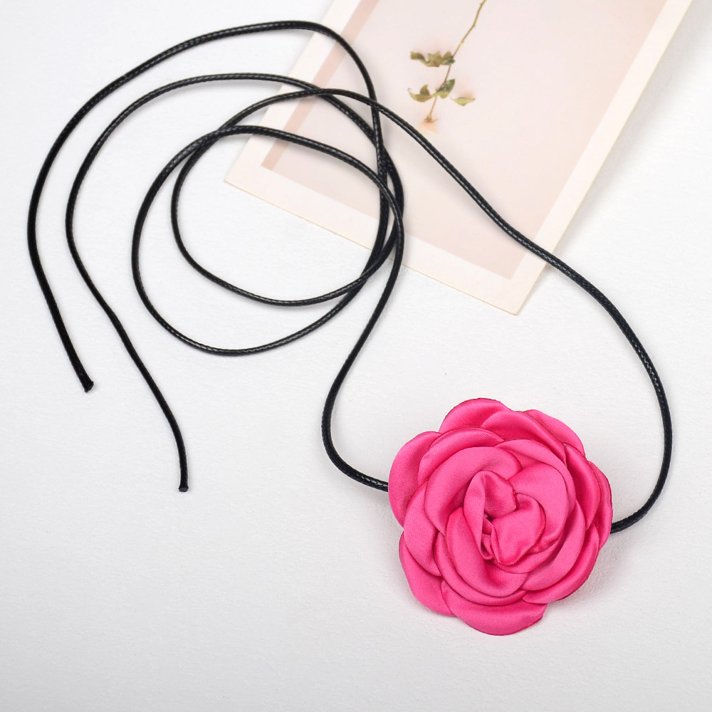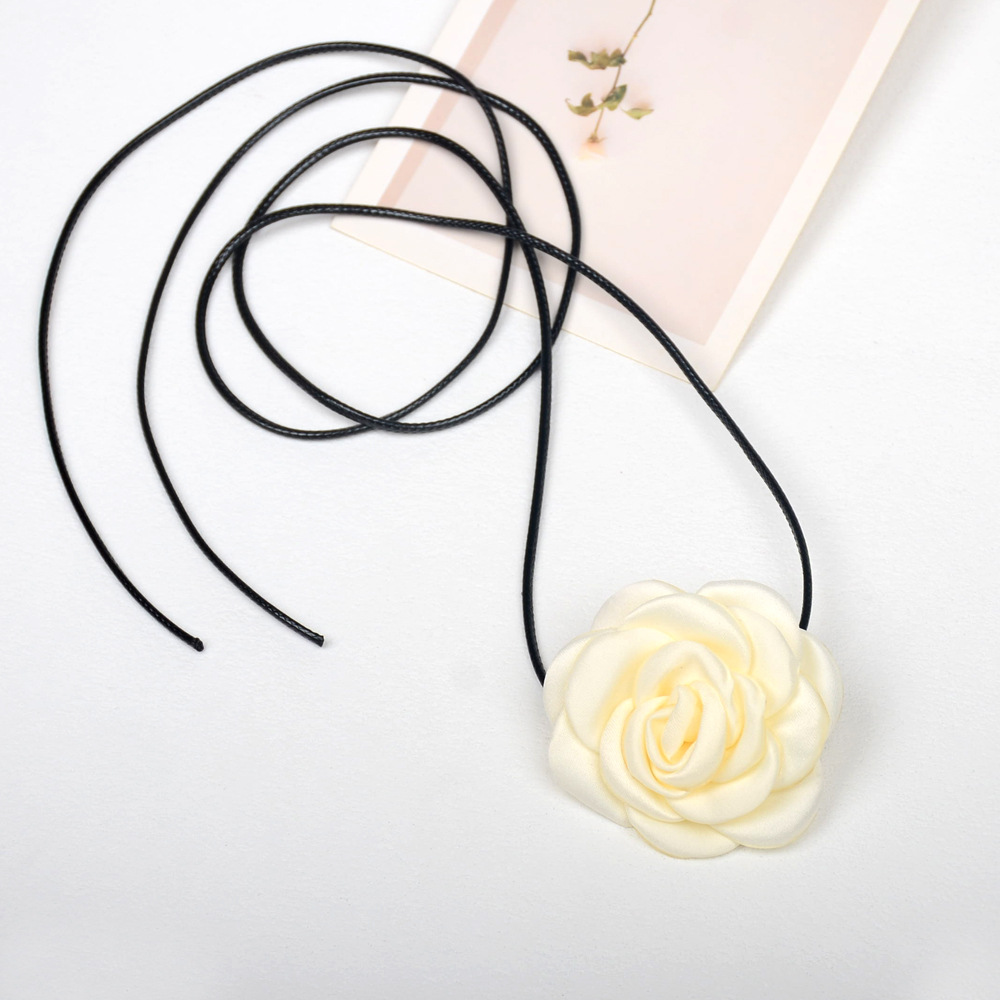 【名称】:复古时尚绑带山茶玫瑰花朵 甜美颈链立体花朵choker项链腰饰批发