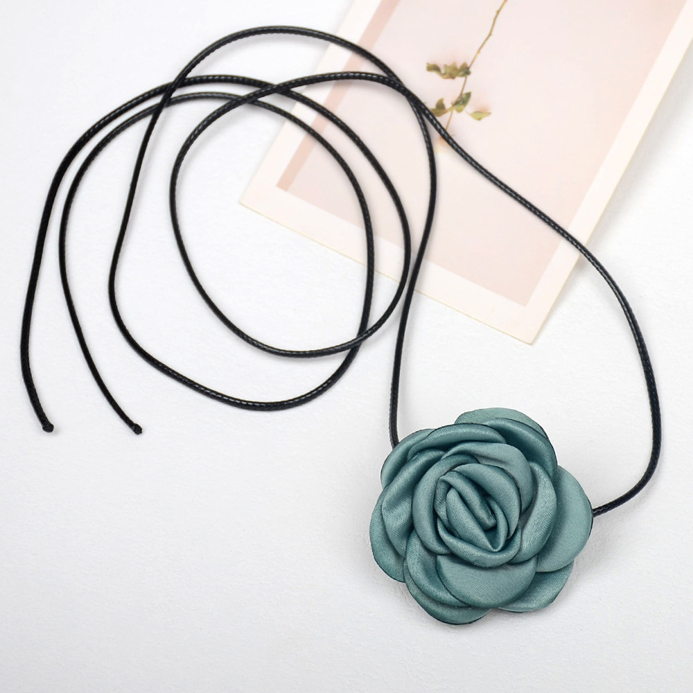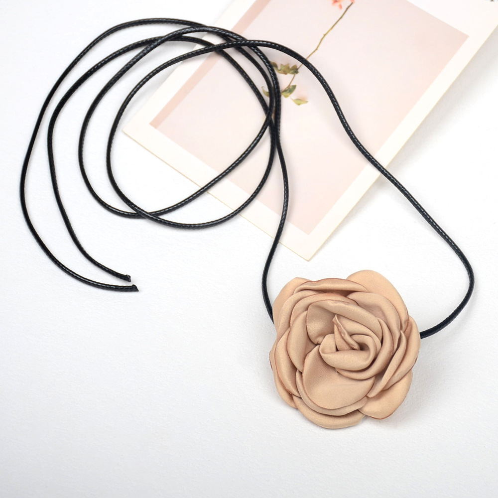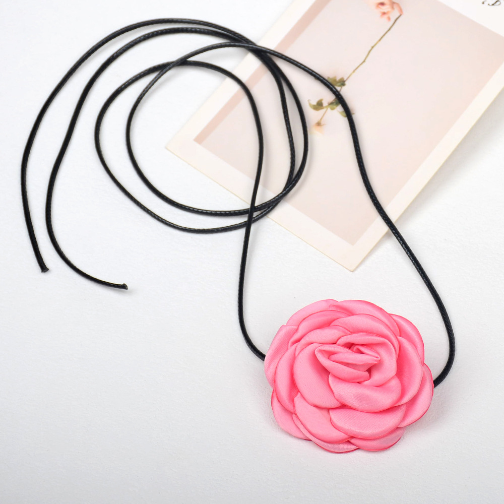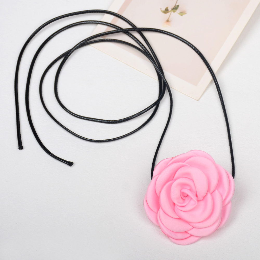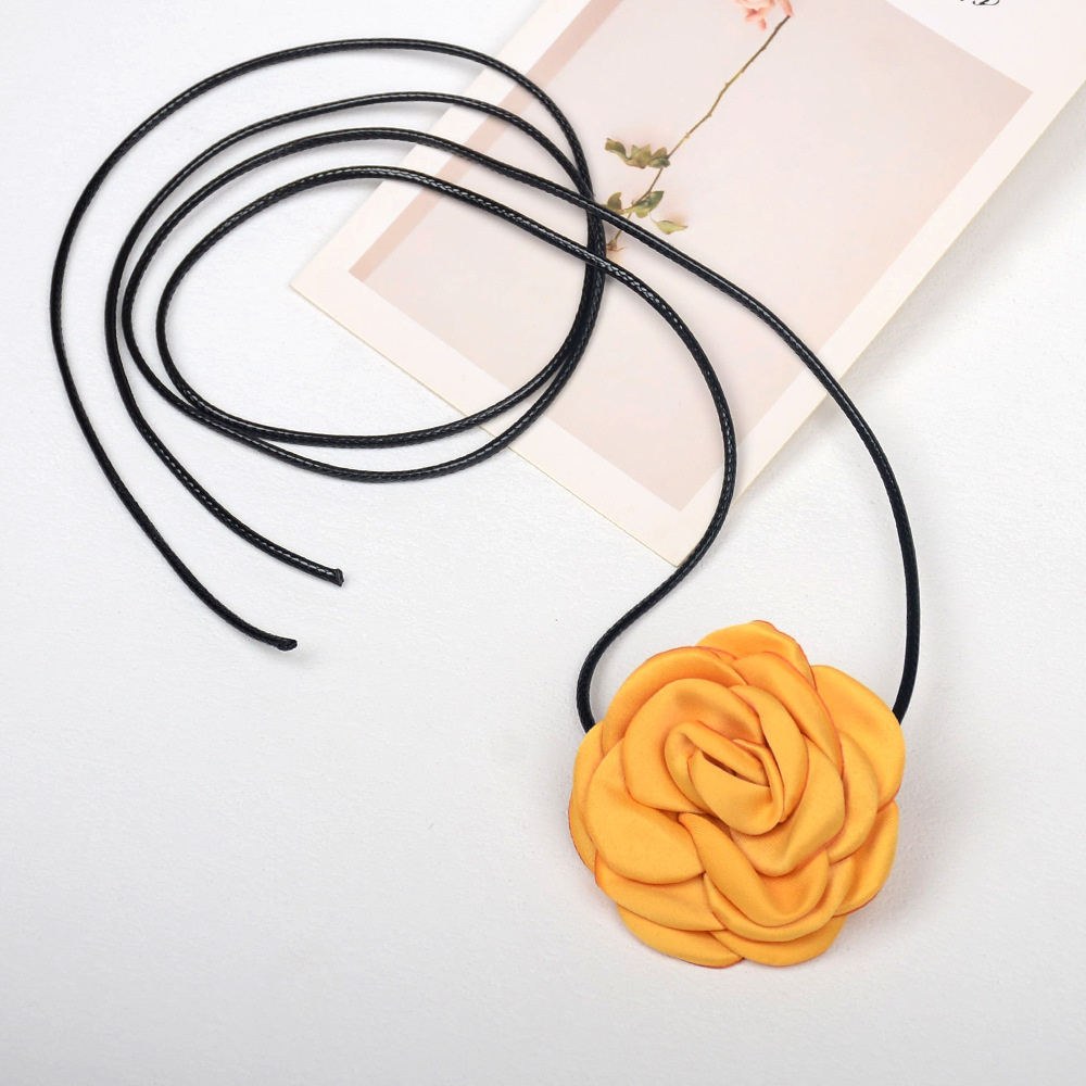 【名称】:复古时尚绑带山茶玫瑰花朵 甜美颈链立体花朵choker项链腰饰批发