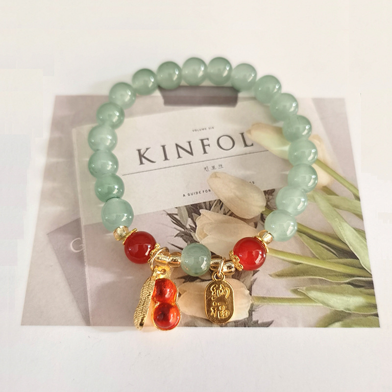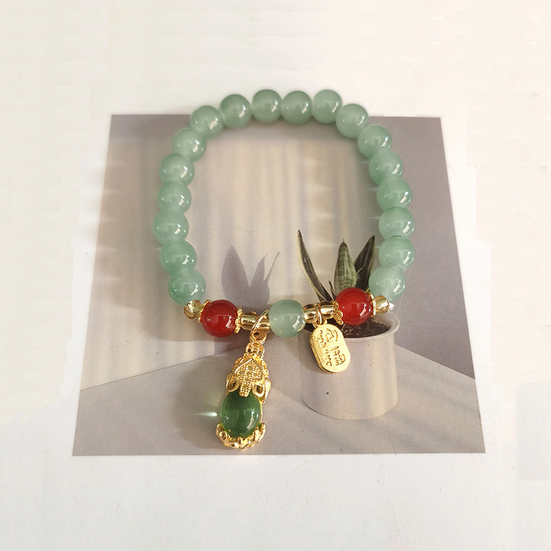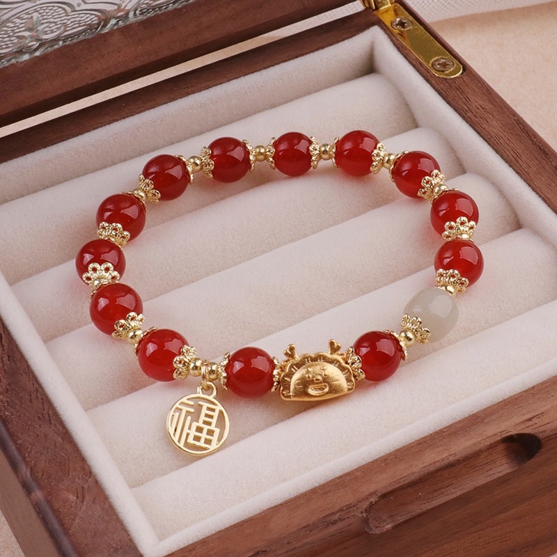 Color: S392 lucky dragon dumpling red beads green beads bracelet