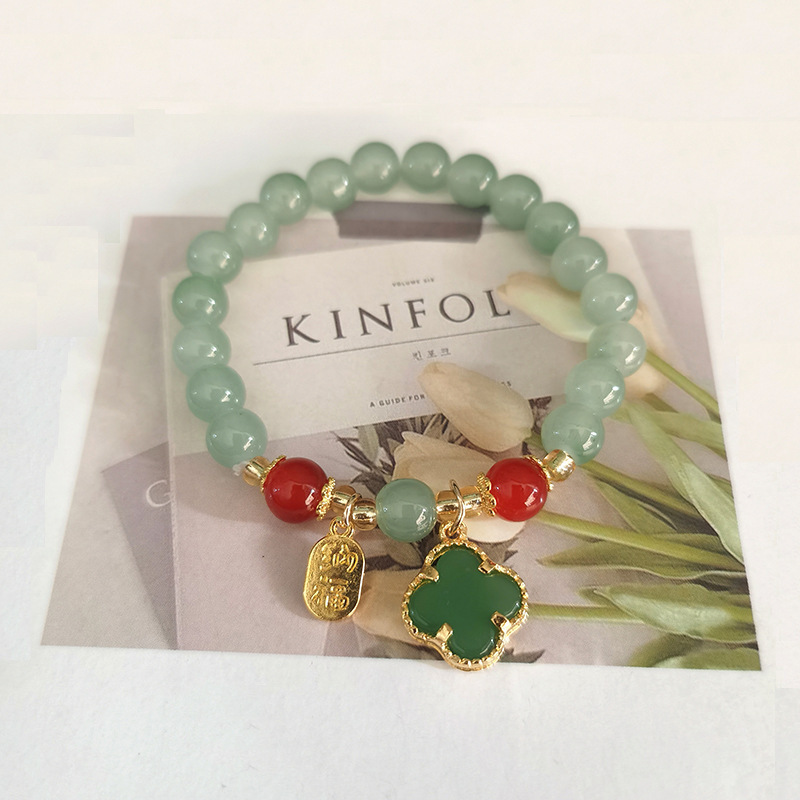 Color: S161 fresh green and white bead four-leaf clover bracelet