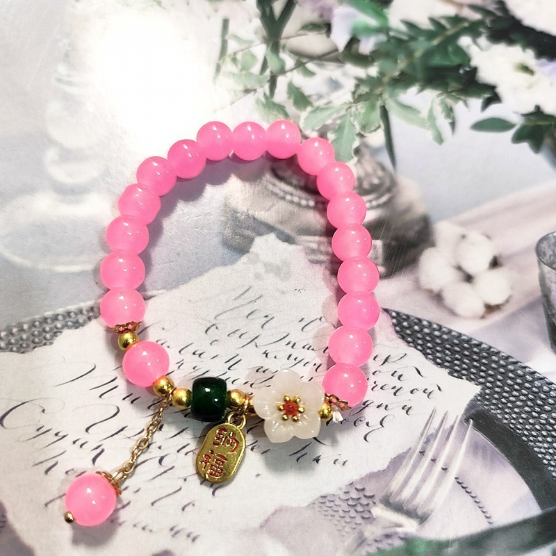 Color: S519 lucky dragon dumpling pink beads and white beads bracelet