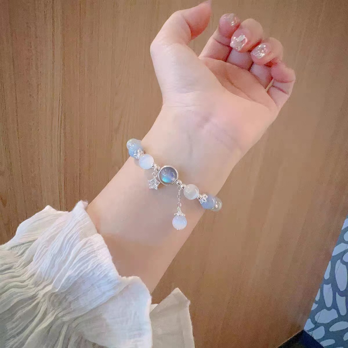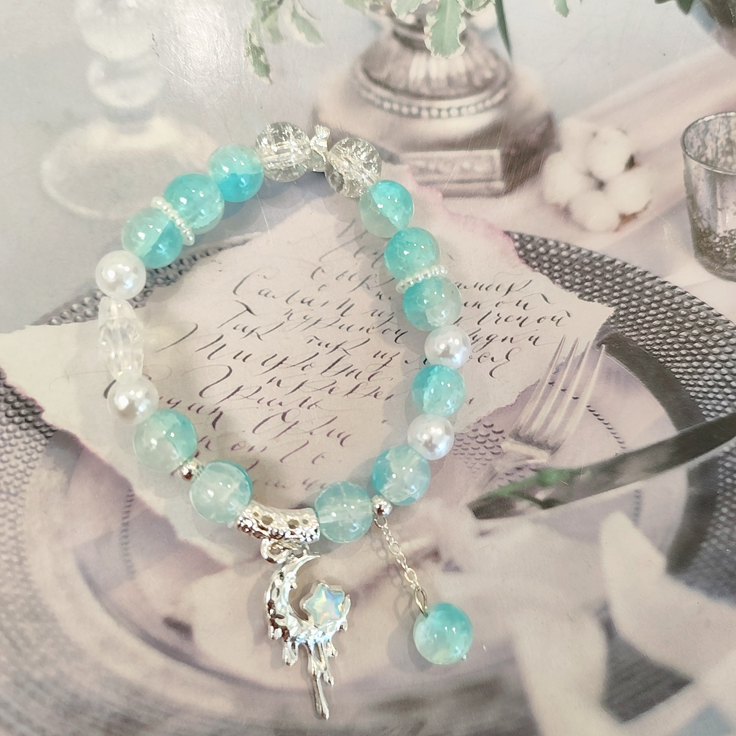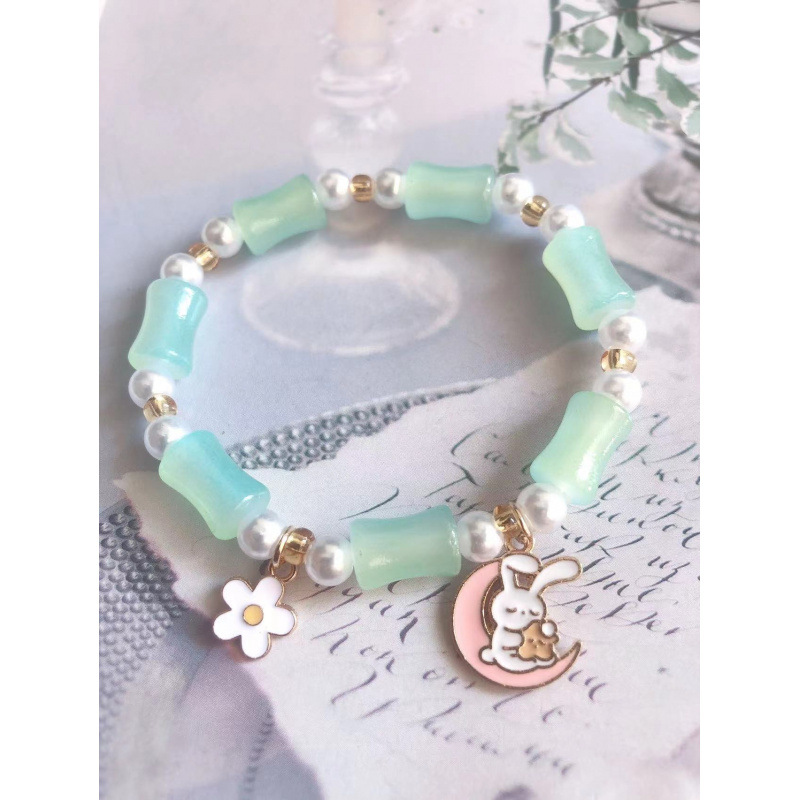 Color: S207 lake blue bamboo string pearl moon rabbit bracelet