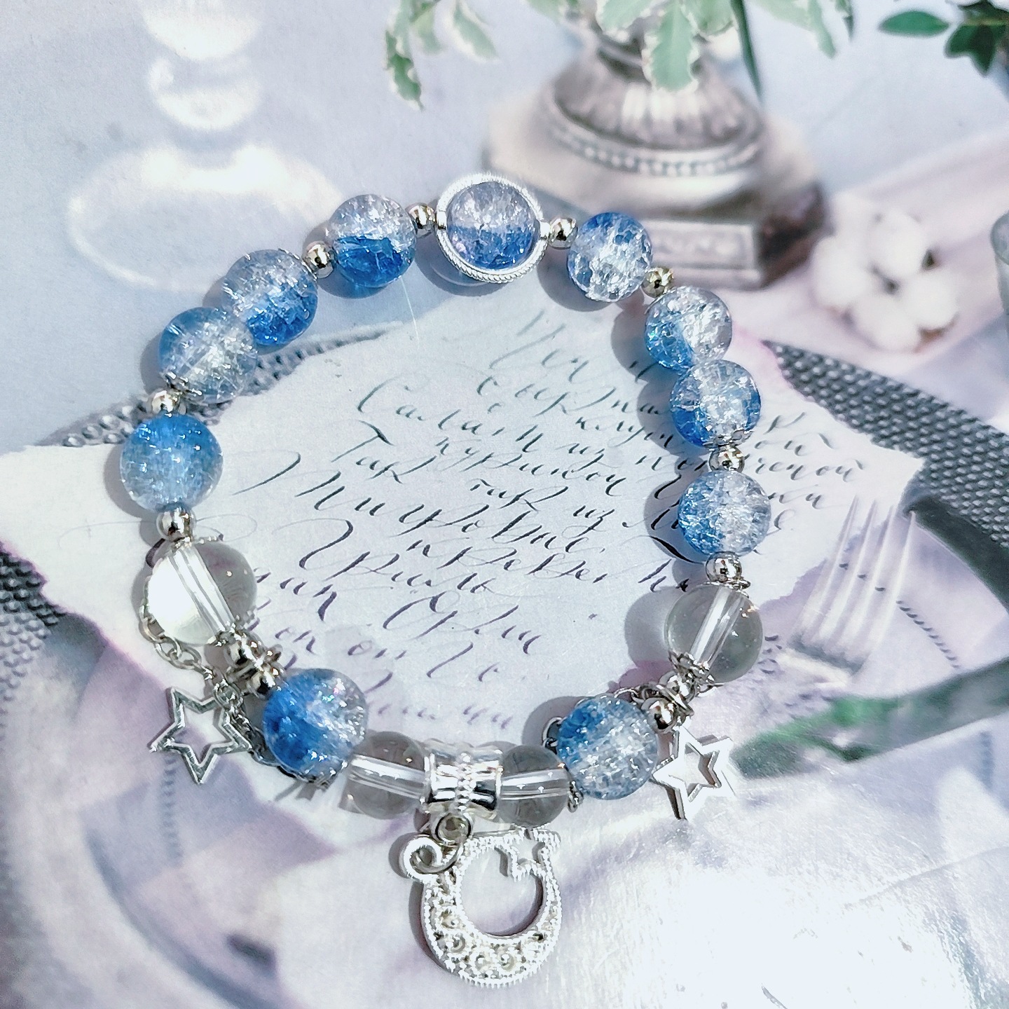 Color: S223 blue explosive beads star and moon butterfly love bracelet
