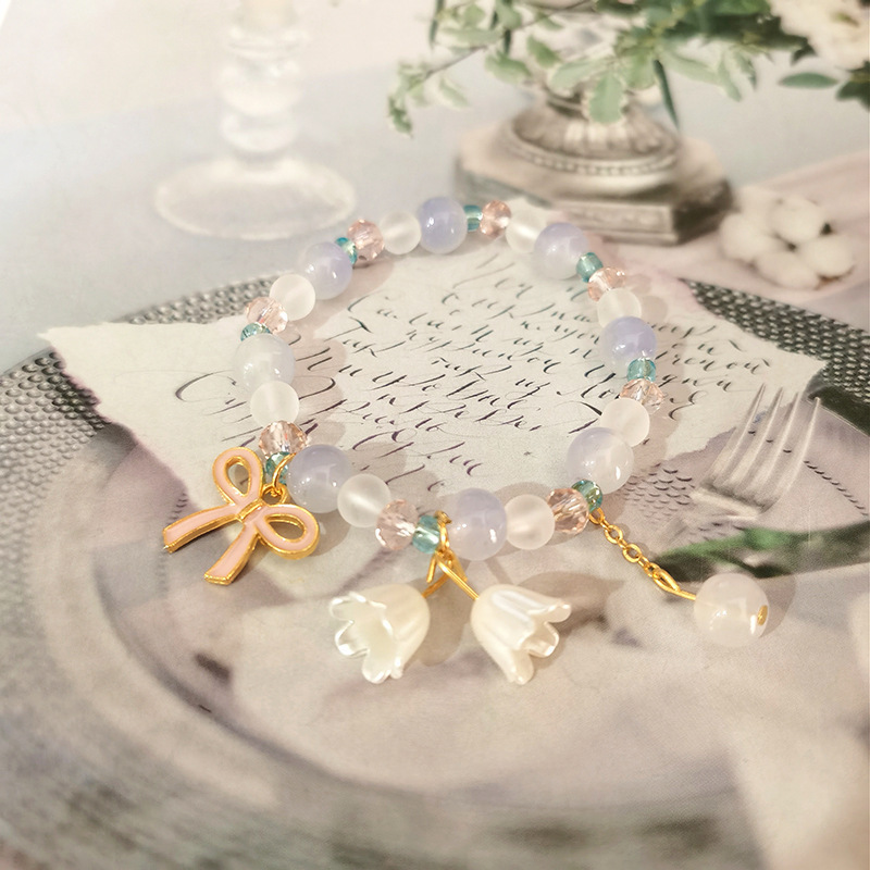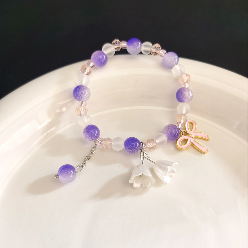 Color: L02 peach purple white bow lily of the valley flower bracelet