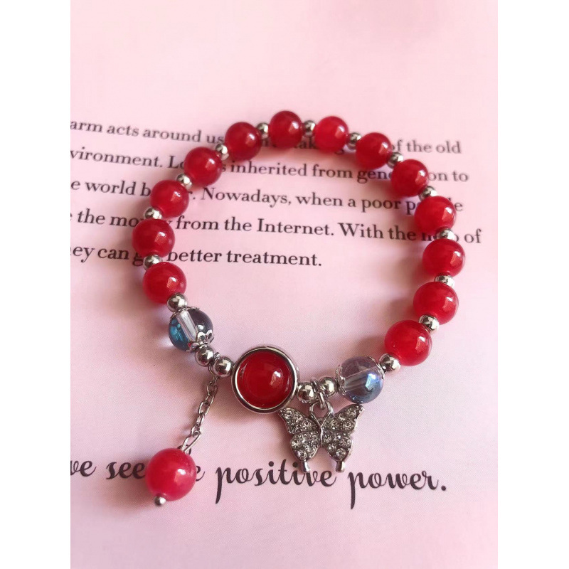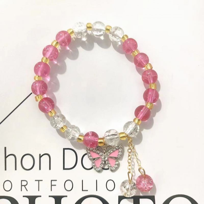 Color: S95 strawberry crystal exploding beads bow bracelet