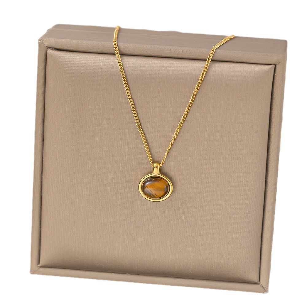 Color: 【xlh406】oval tiger eye necklace gold