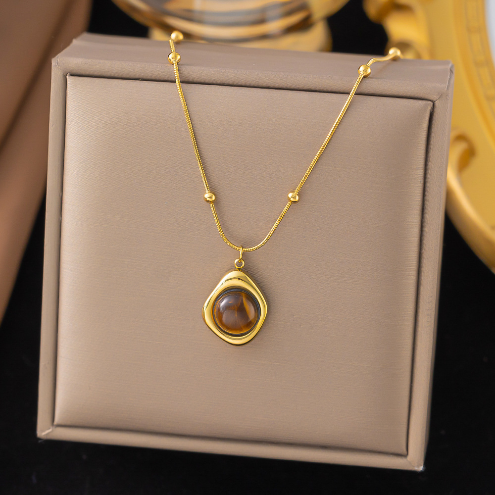 Color: 【xlh95】geometric tiger eye stone necklace gold