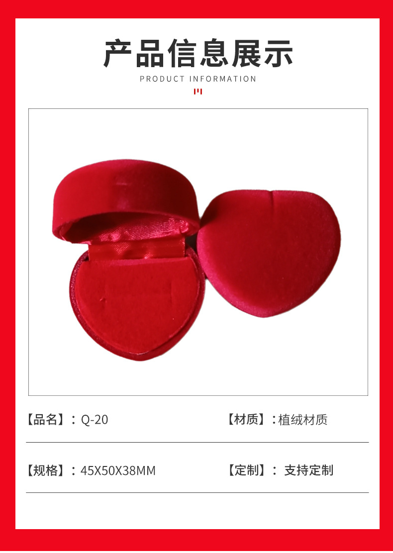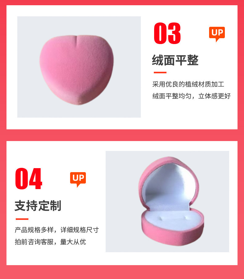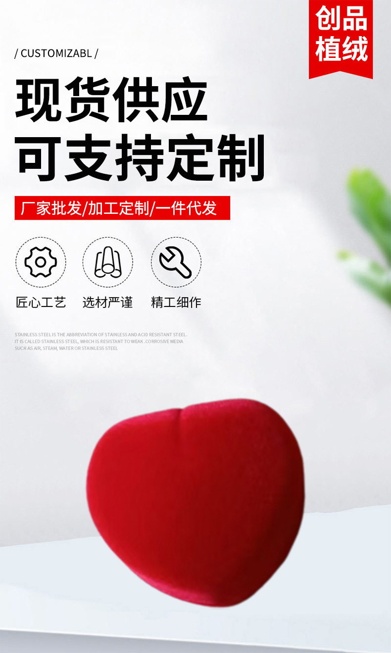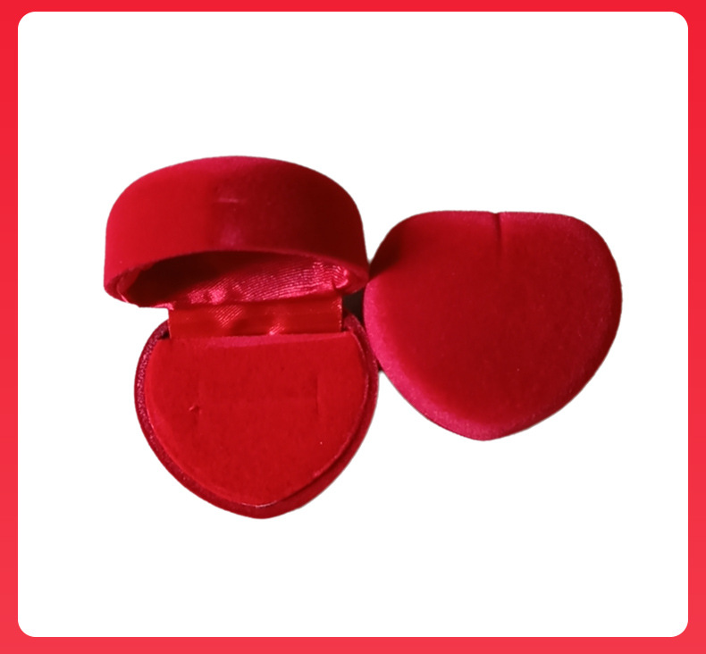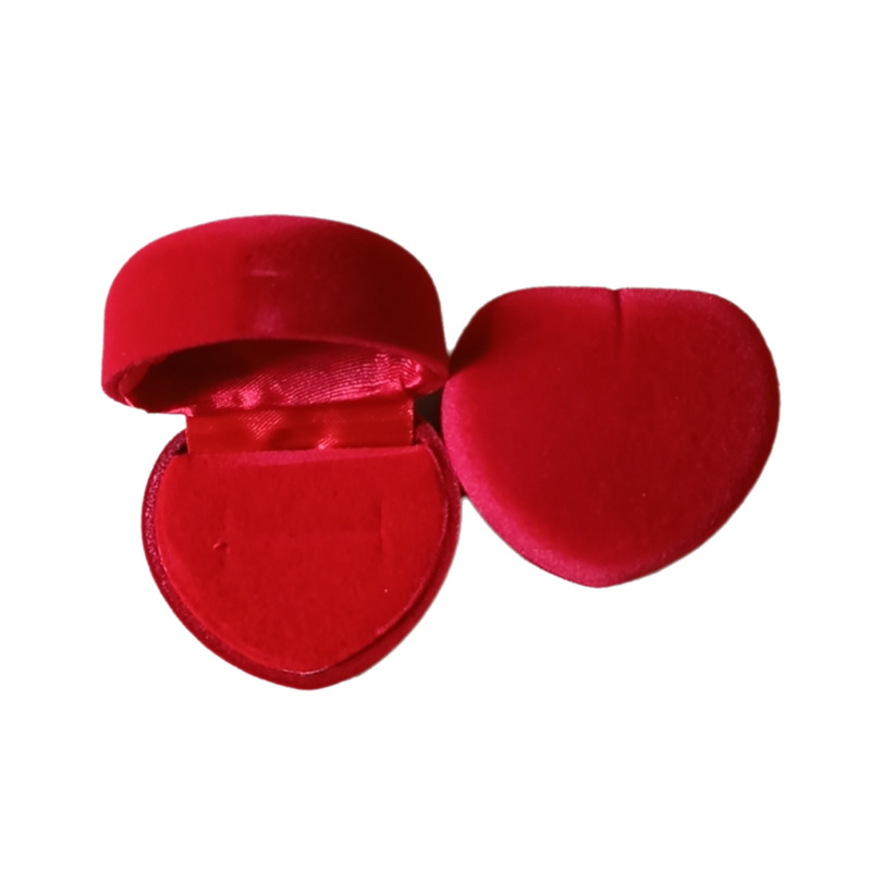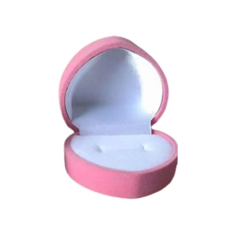 Heart-Shaped Ring Box Velvet Heart-Shaped Earring Jewelry Box Flocking Gift Packaging Box Wholesale Custom Earrings