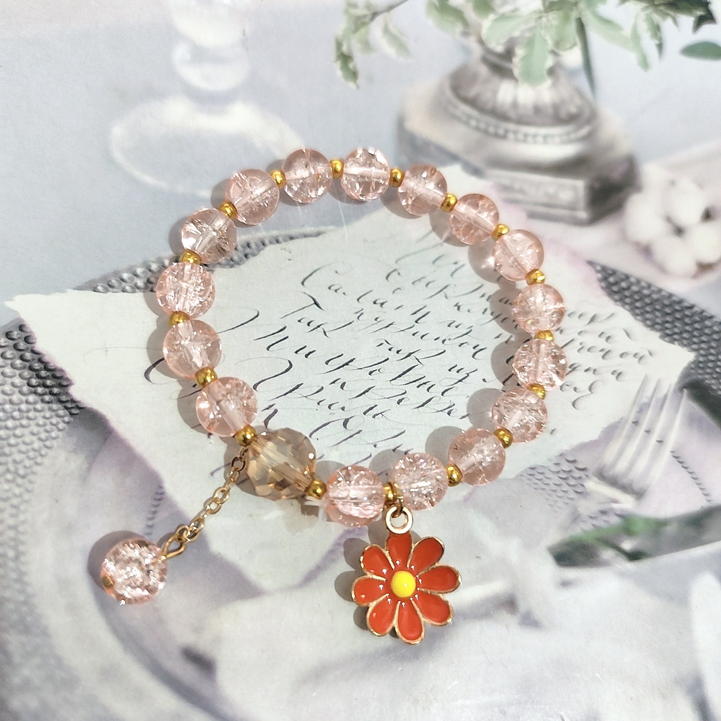 Color: S145 strawberry crystal explosive beads daisy bracelet [free independent packaging bag]
