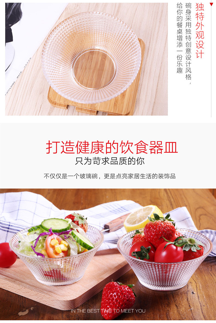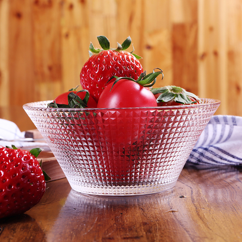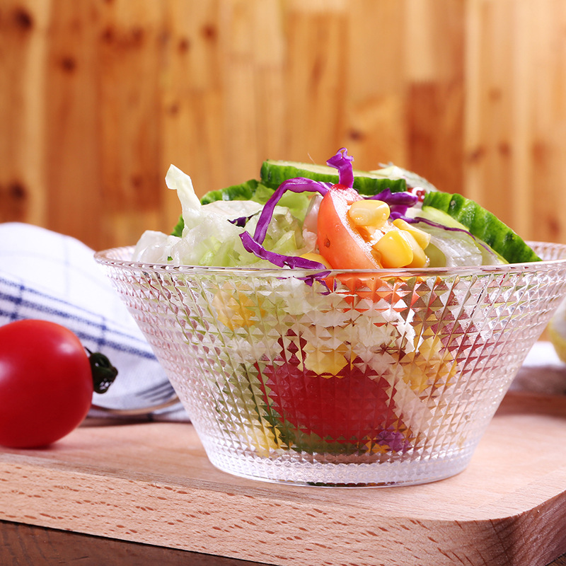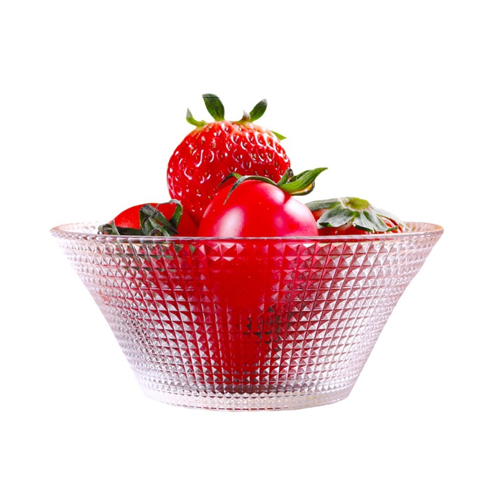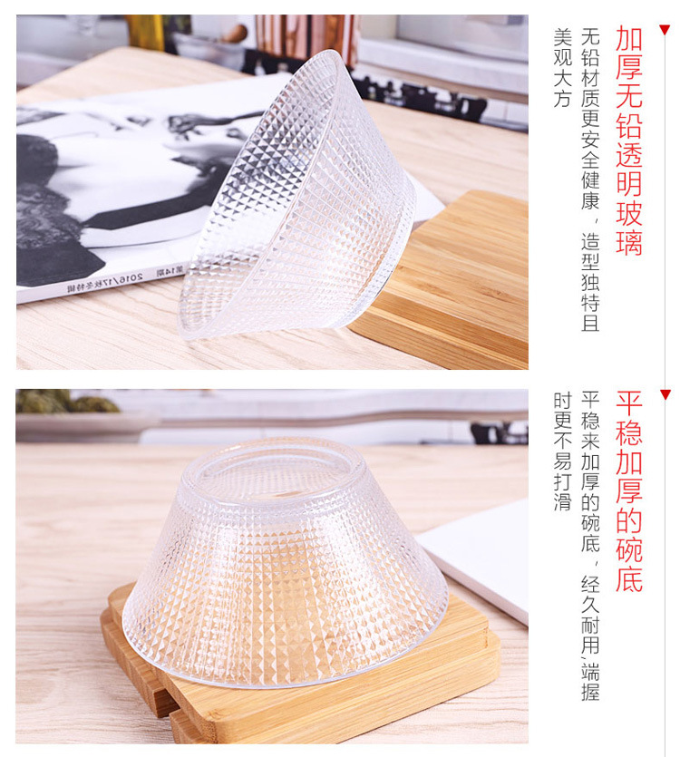 Transparent Glass Salah Bowl Household Heat-resistant Glass Bowl Large Diamond Pattern Glass Bowl Internet Red Bowl