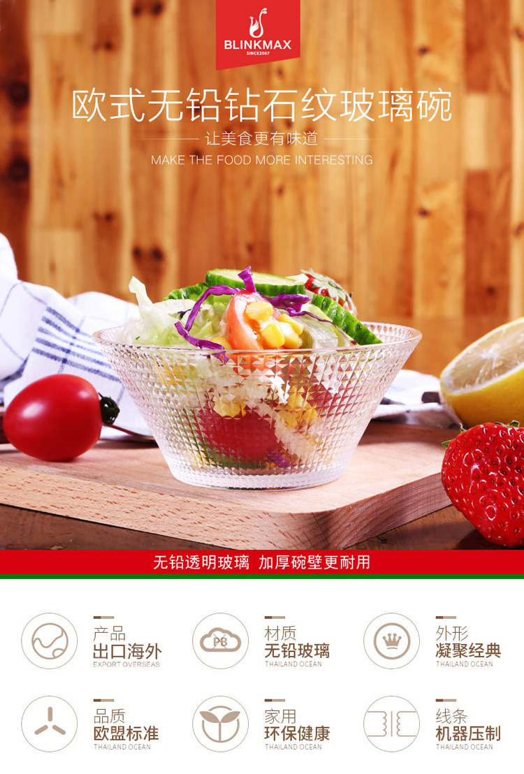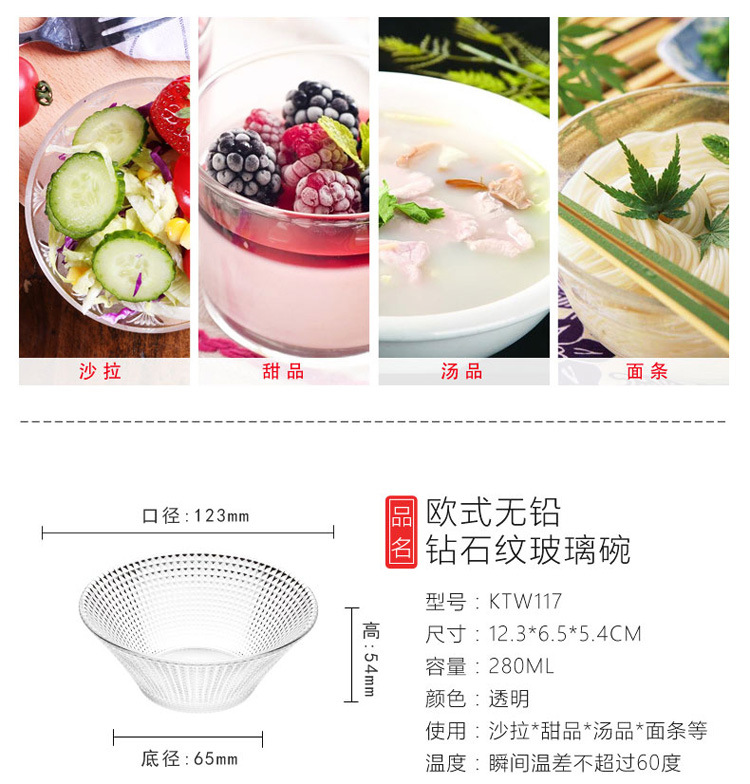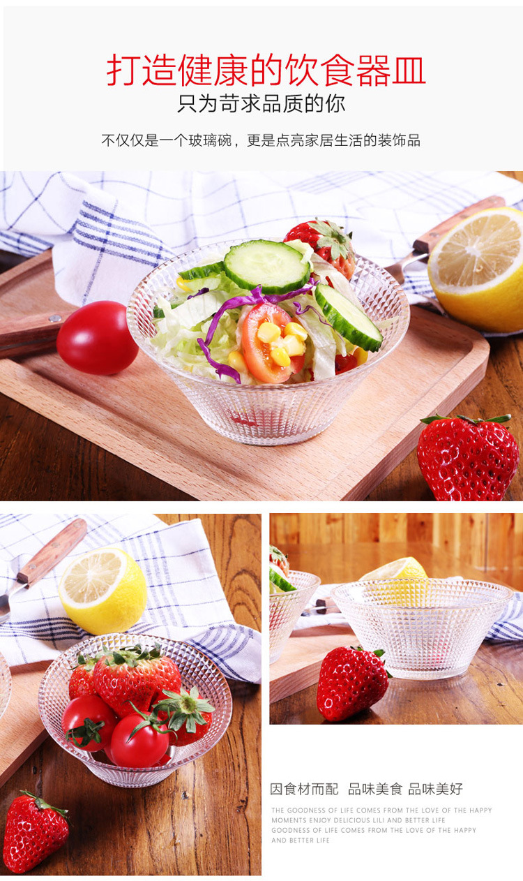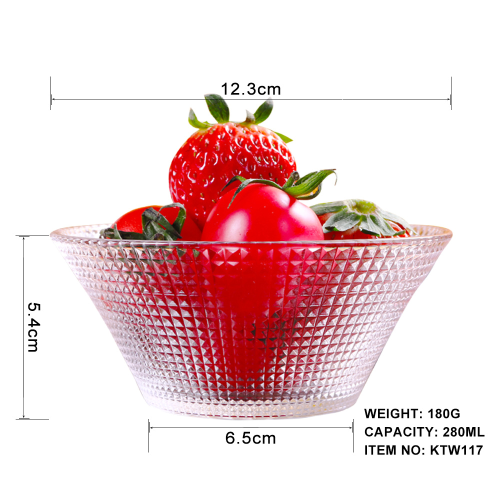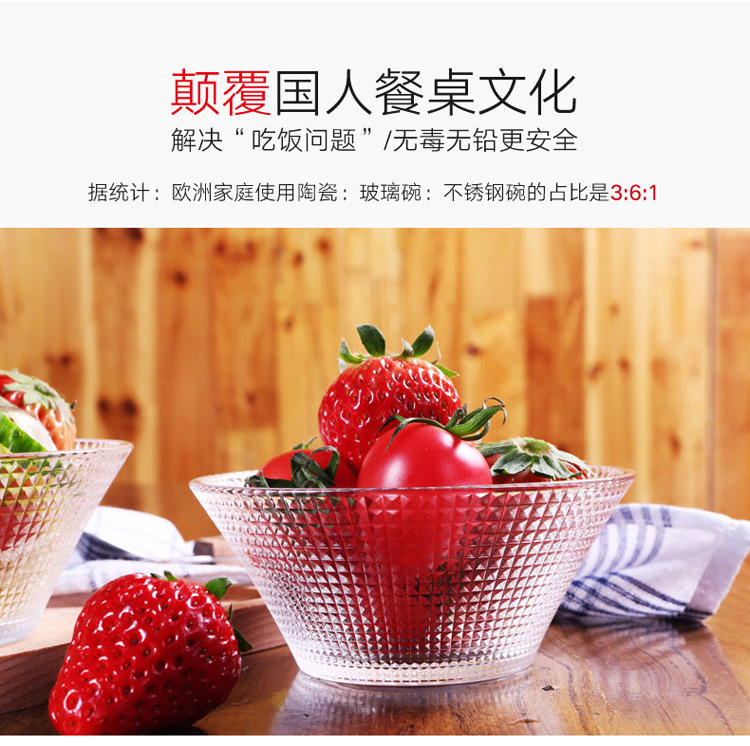 Transparent Glass Salah Bowl Household Heat-resistant Glass Bowl Large Diamond Pattern Glass Bowl Internet Red Bowl