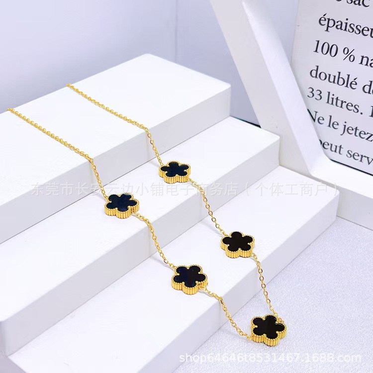 Cross-border Wish Hot Selling Lucky Five-petal Flower Earring Necklace suit European and American Fashion All-match Five-leaf Flower Jewelry suit