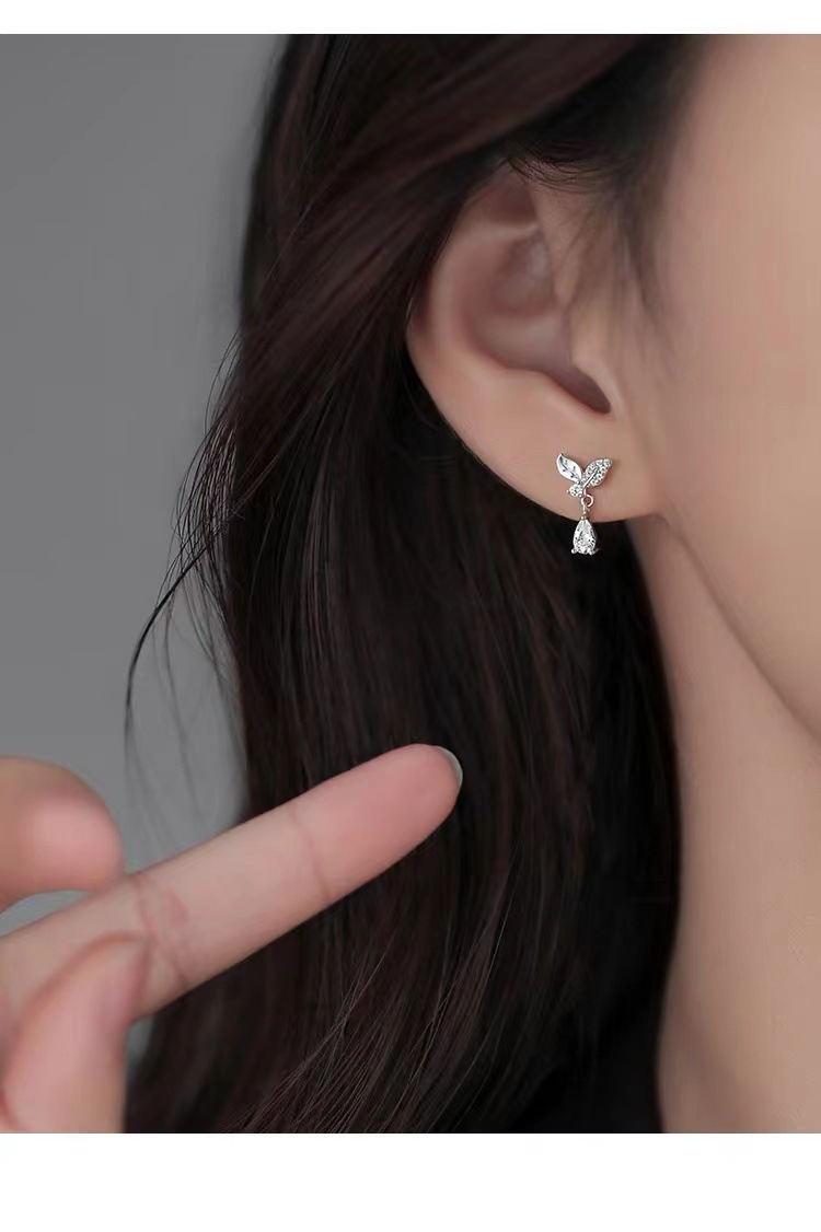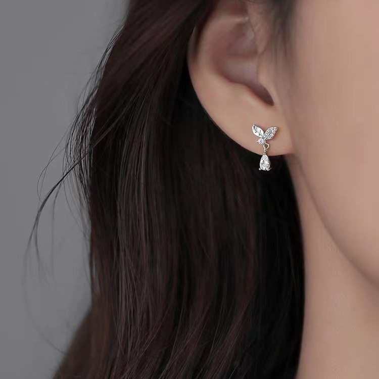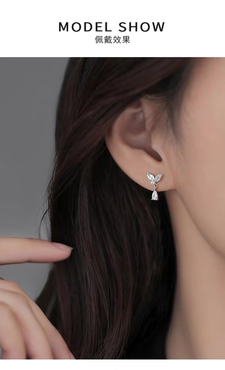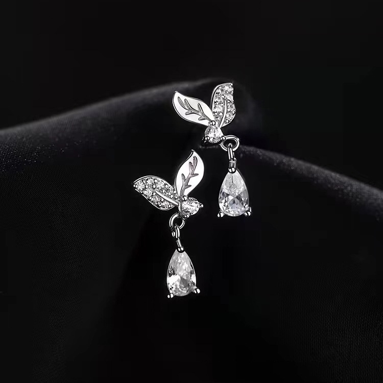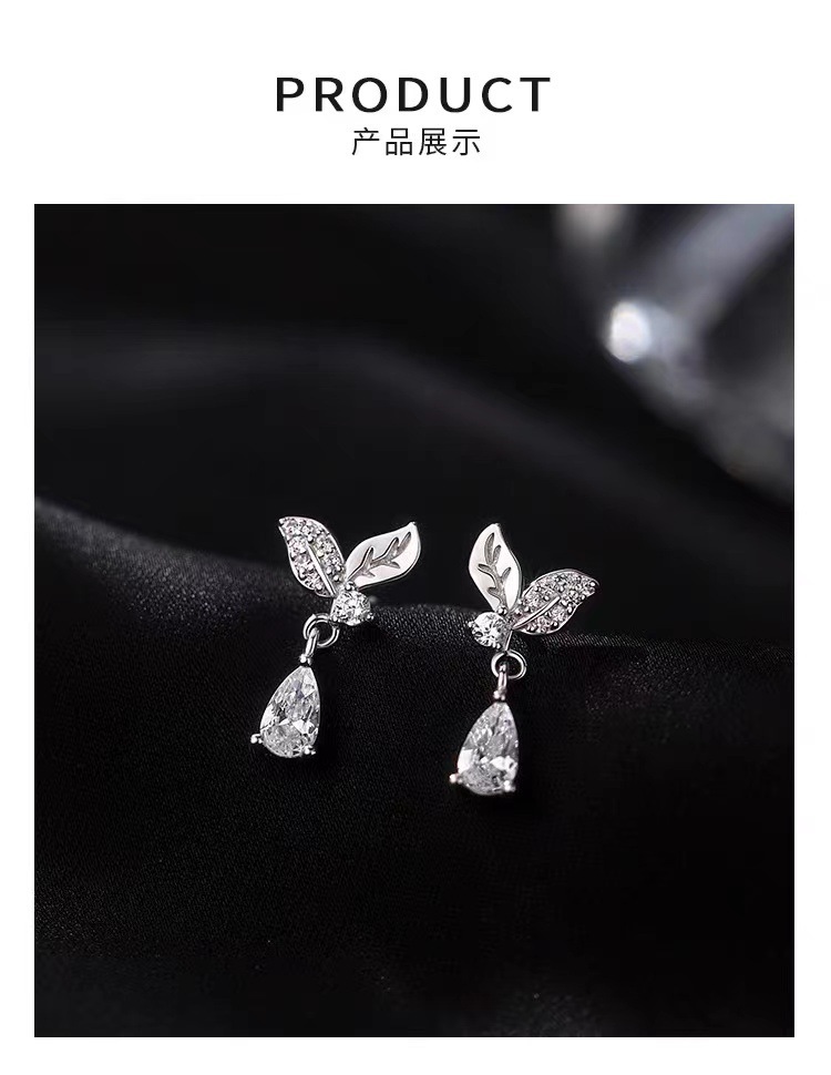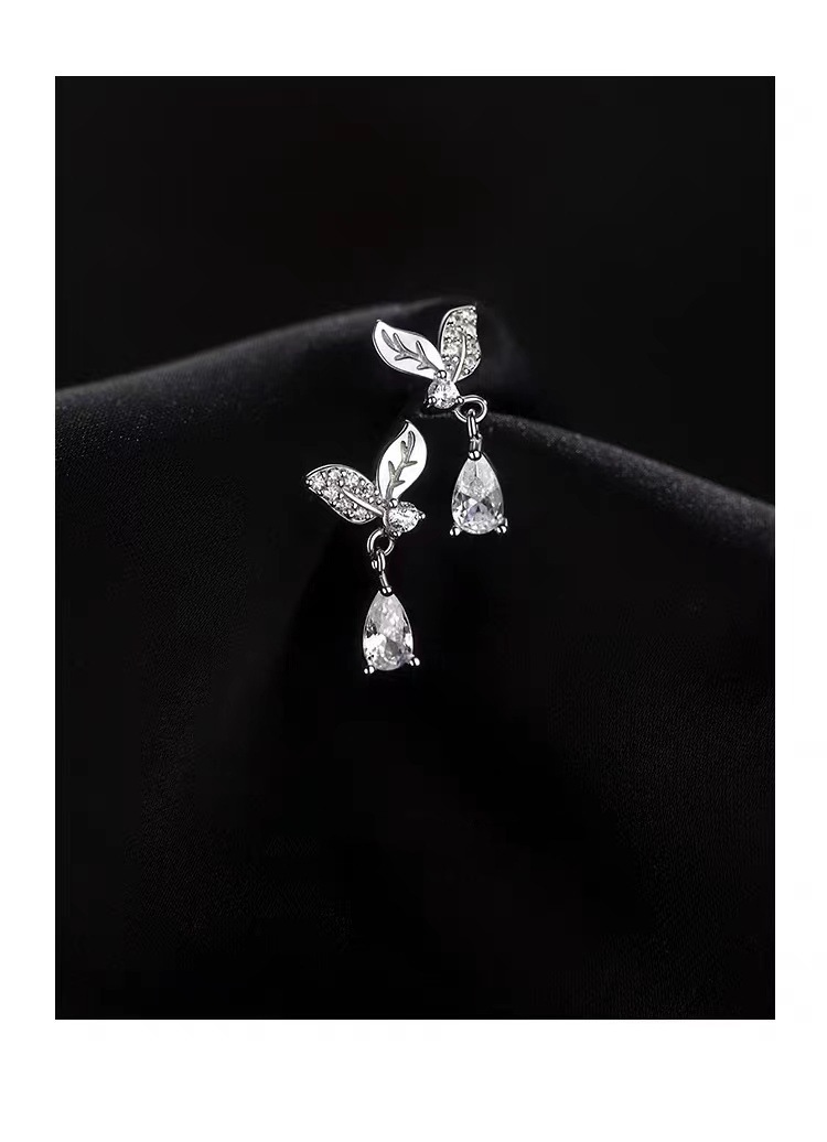 Leaves New 2024 Explosive Water Drop Earrings Light Luxury High-end Earrings Women's Mori Design Sweet All-match